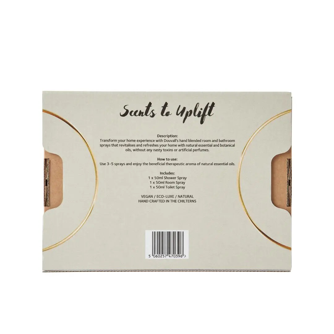Indulge in the ultimate gift for home lovers with our limited edition Scents to Uplift Gift Set. Elevate the ambiance of any space with Douvall's expertly hand-blended trio of home sprays, thoughtfully curated to transform your surroundings into a sanctuary of delightful scents.