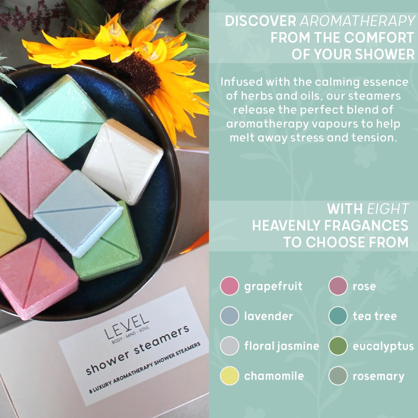 Discover the enchanting benefits of aromatherapy with LEVEL Wellbeing's luxurious relaxing shower steamers, now available at SMUG. Indulge in the calming aromas as they dissolve in warm water, promoting clear breathing and soothing relief. Enhance your shower routine and enjoy effortless relaxation.
