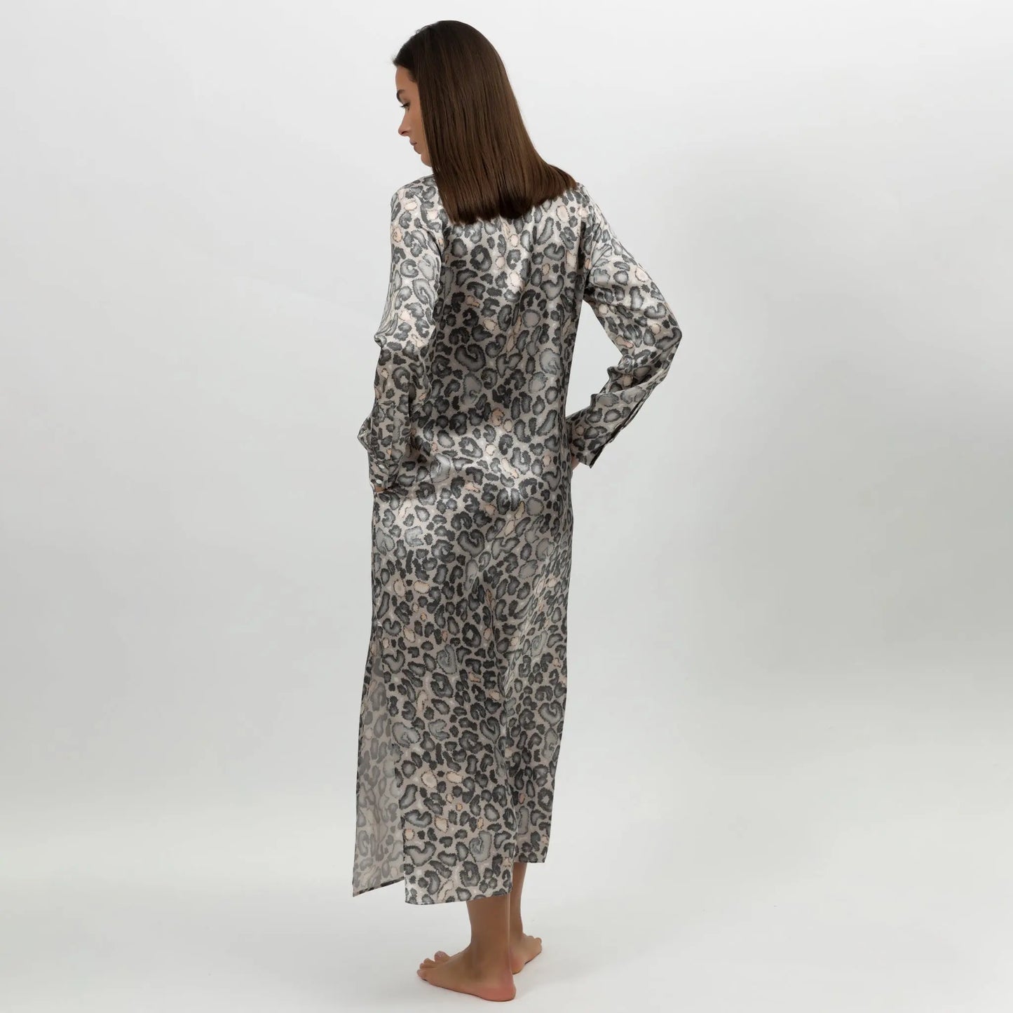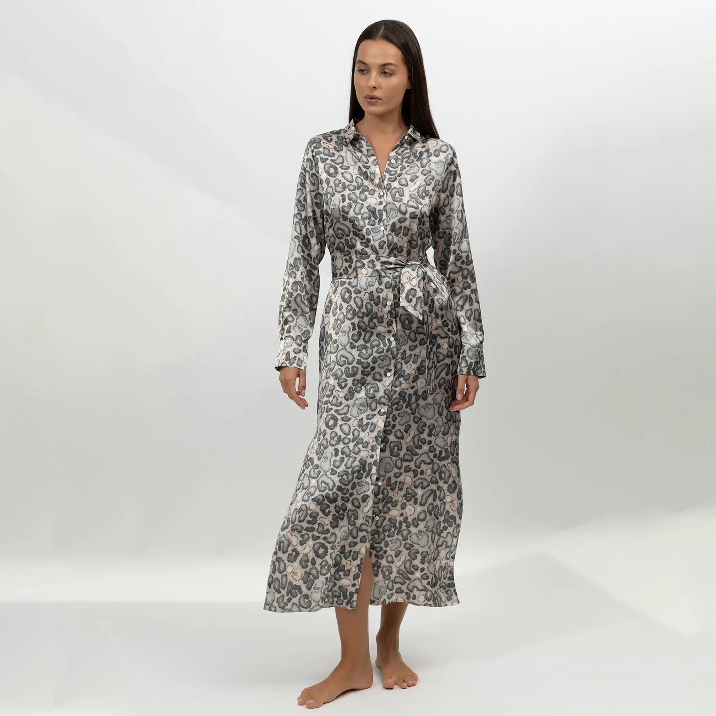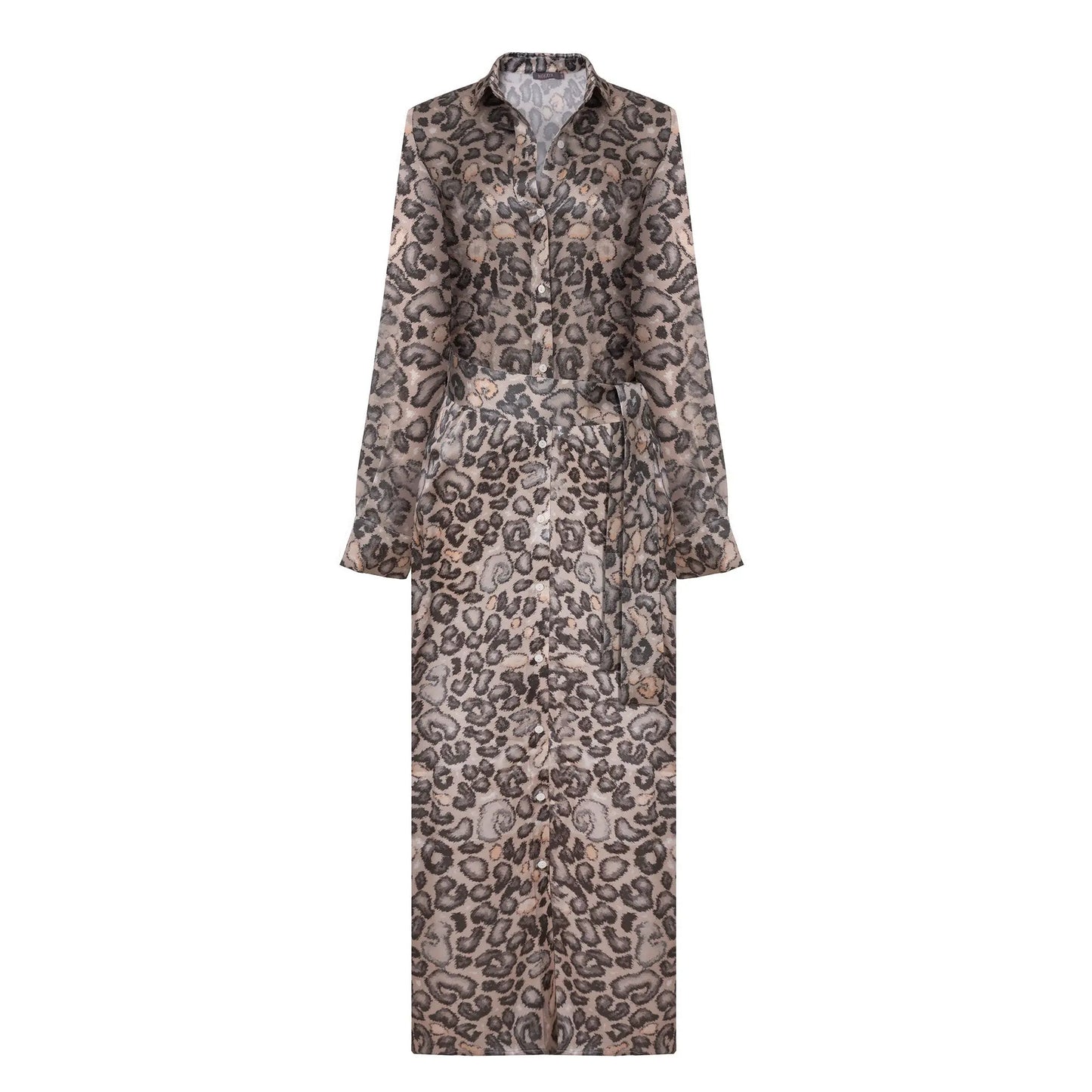 The Animal Print Shirt Dress is made from 100% Mulberry Silk, offering a bold interpretation of a timeless silhouette. Its relaxed shape, button-down front and cuffed sleeves сombine relaxed structure with a strong visual identity.