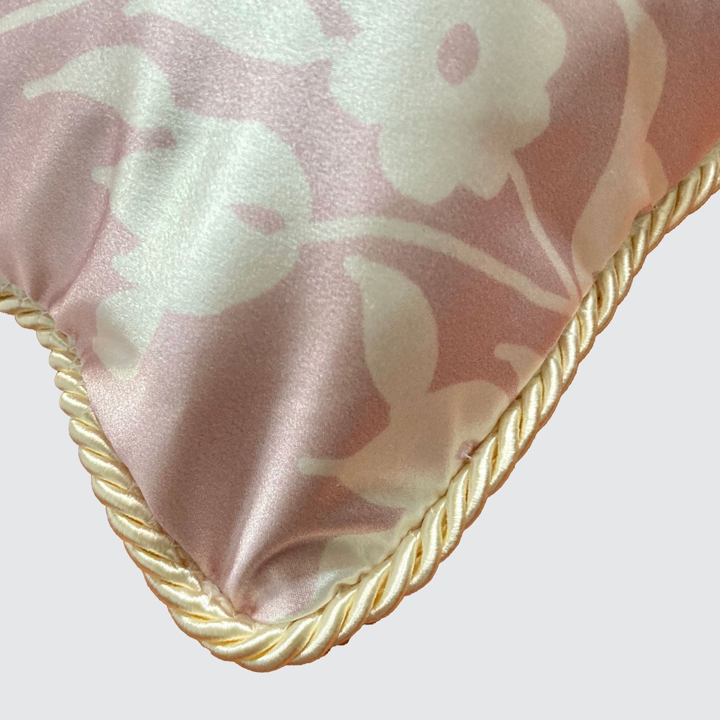 This beautiful Silk Cushion will add a touch of sophistication and charm to your interior. Designed in a soft pink hue and white foliage pattern, it adds a refined and elegant look to any room. Crafted with high-quality silk, it is sure to become a timeless piece that you will enjoy for years to come.