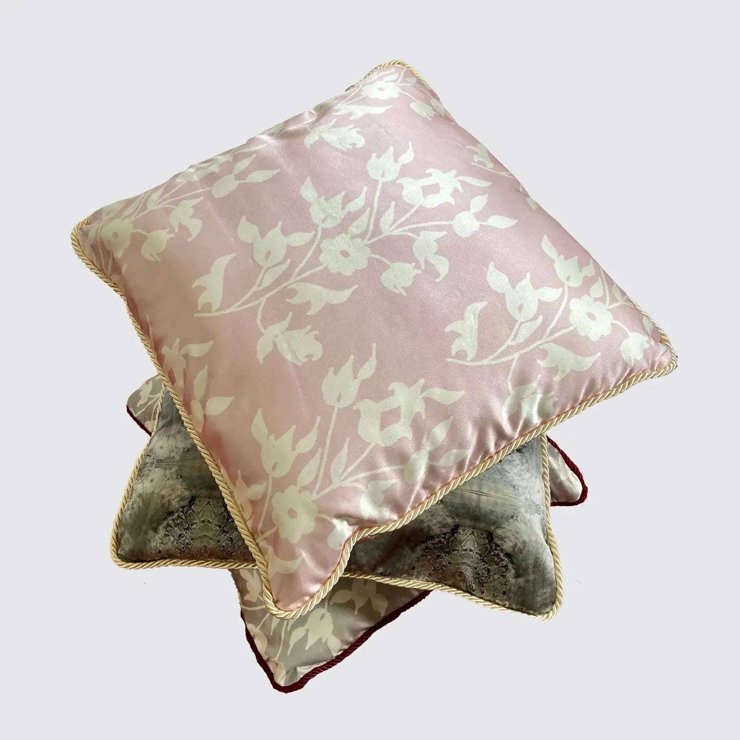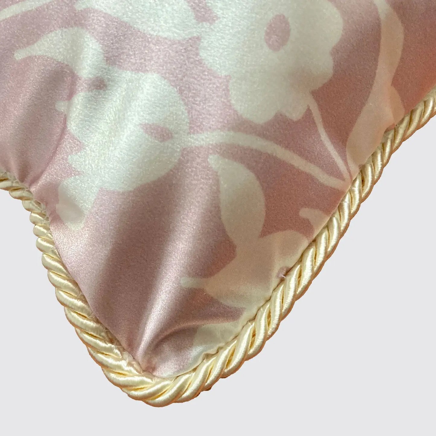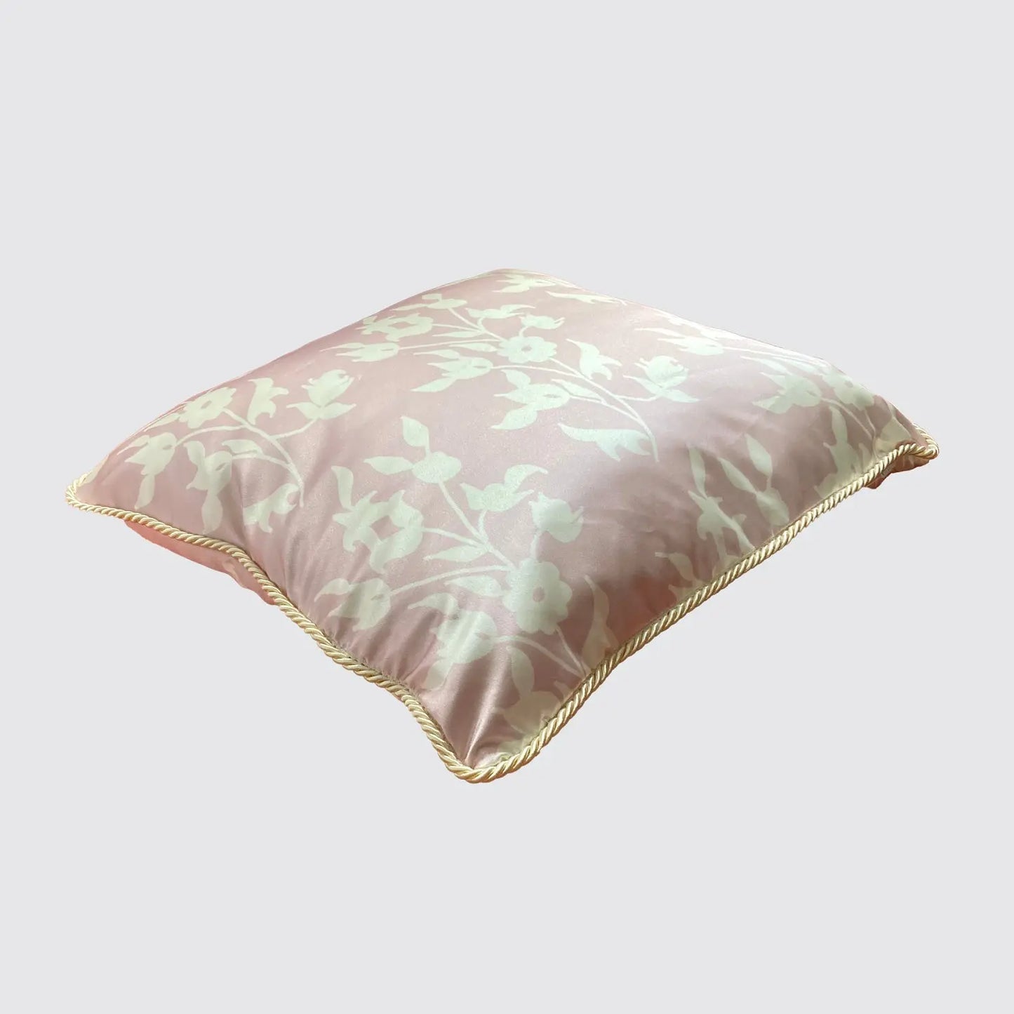 Add a touch of sophistication and gentle charm to your home with this elegant silk cushion, featuring a soft pink background adorned with a refined white foliage pattern. Crafted from premium real silk satin and finished with cream braid trimming, this timeless piece elevates any room with its subtle beauty and luxurious feel.