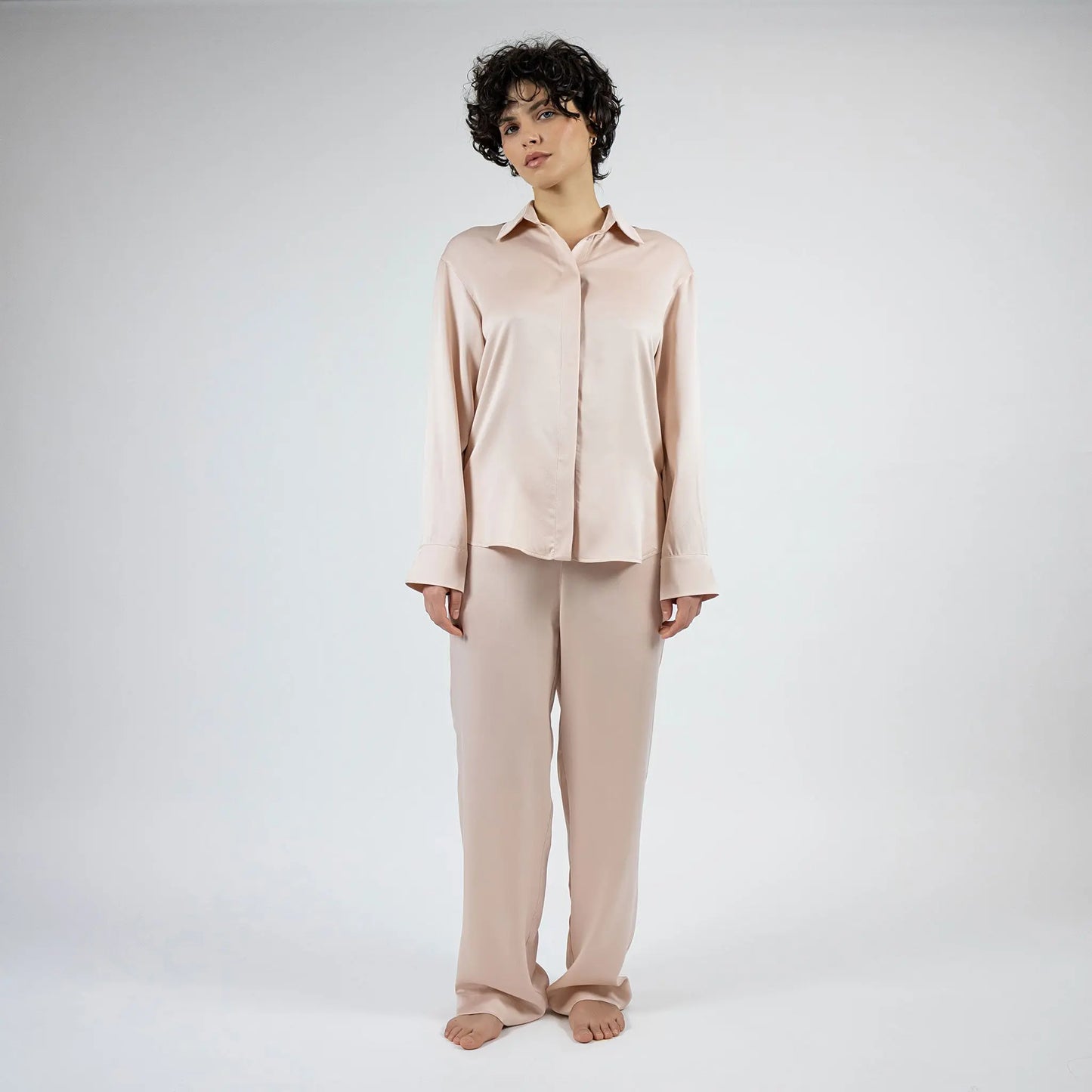 The Dreamscape Pyjama Shirt is fashioned from pure and washable Mulberry Silk, delivering a decadently smooth touch to the skin. Designed with a relaxed straight cut, the neat collar and concealed buttons.