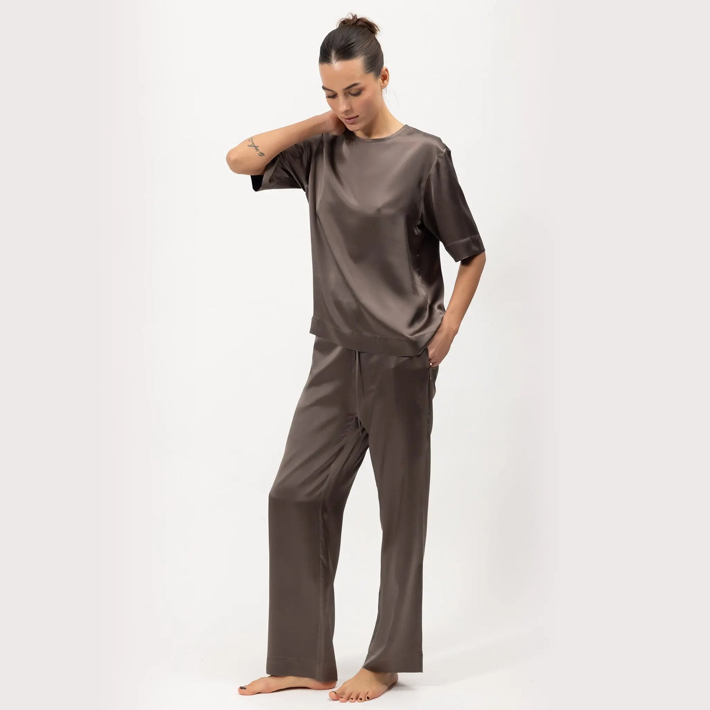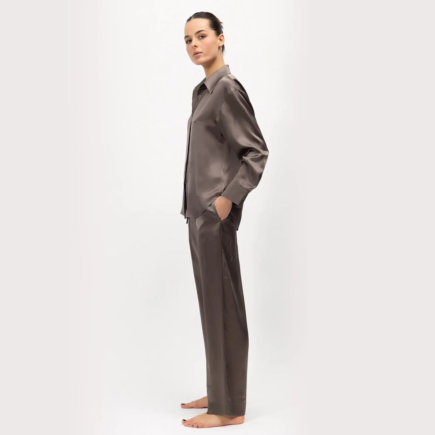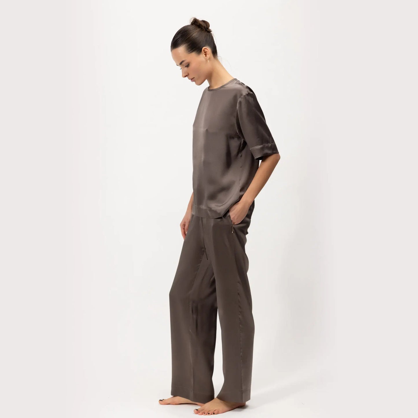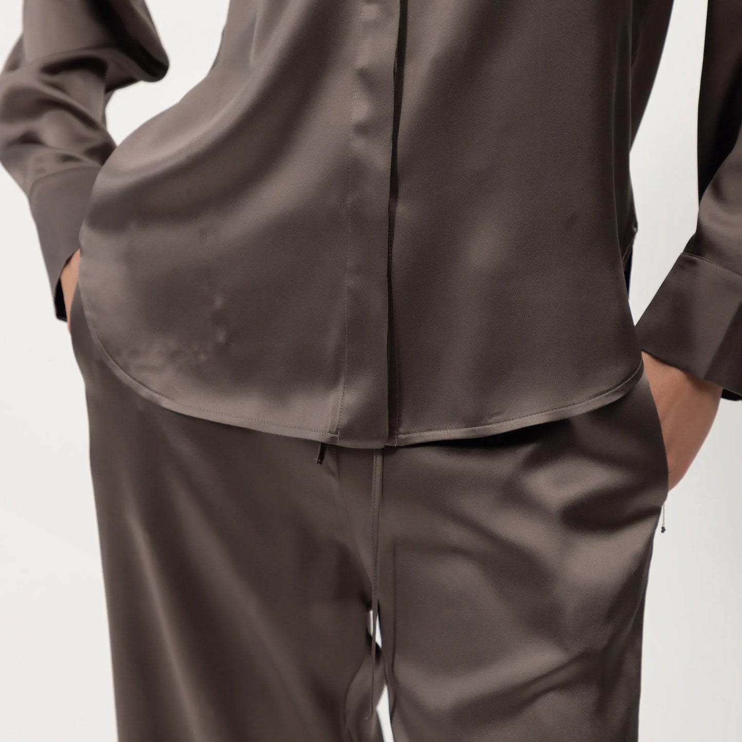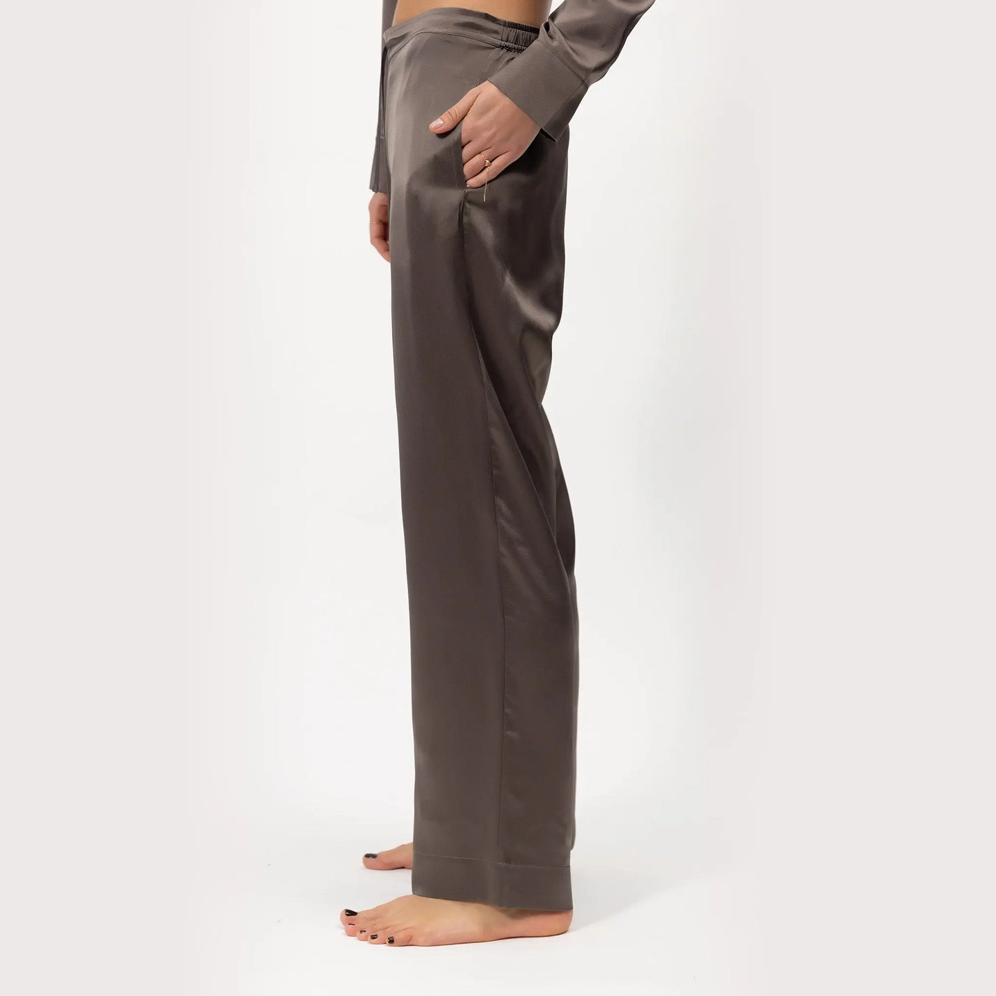The Lady Pants are designed from 100% Mulberry Silk, featuring a relaxed fit with a drawstring waistband for maximum comfort and effortless elegance. Their fluid design ensures they drape beautifully, making them a go-to piece for lounging and casual outings.