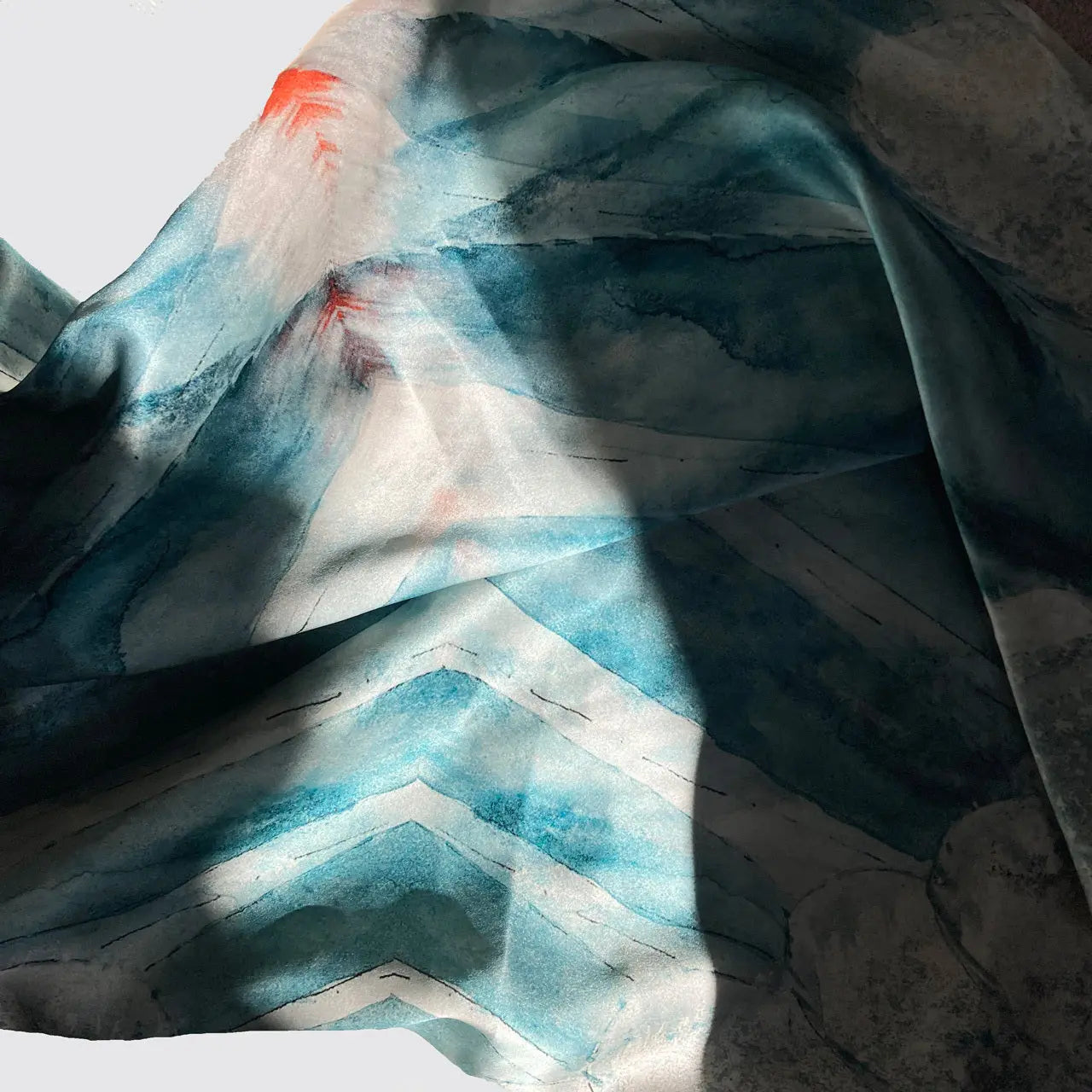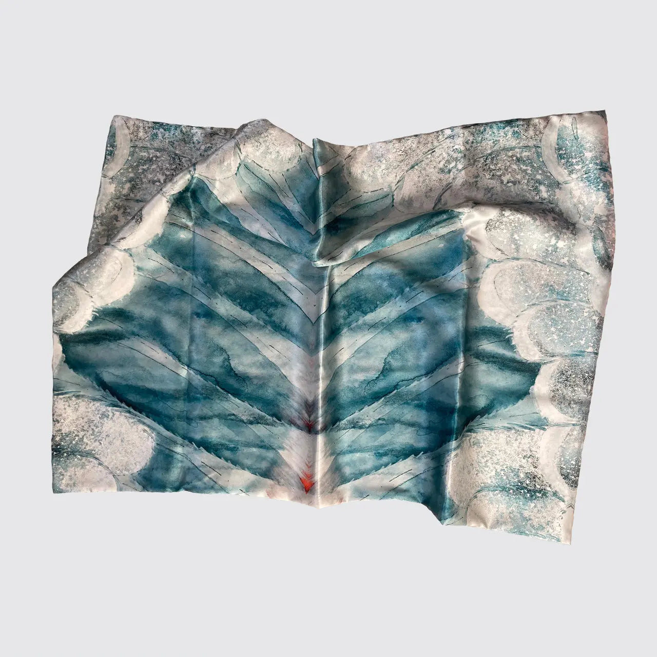 - Elegant aqua silk with a delicate wing motif for a sophisticated, serene look.