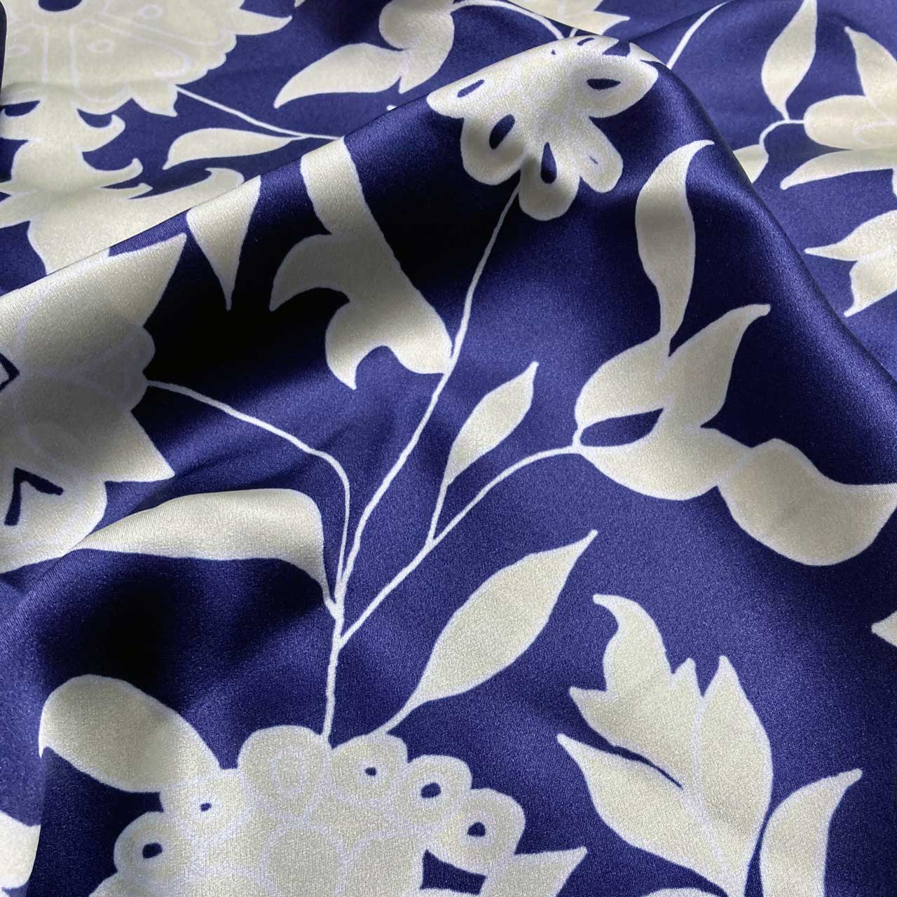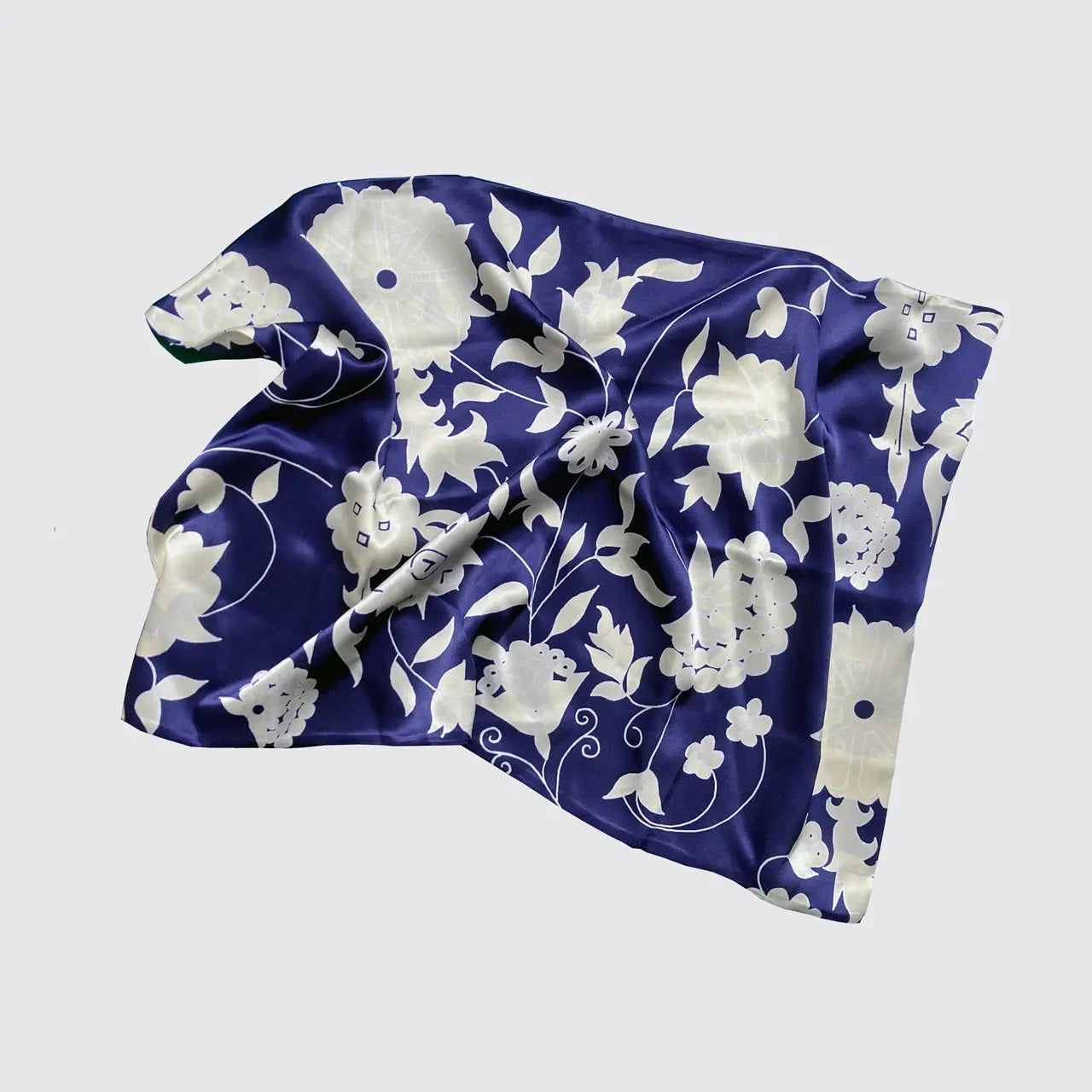 Silk Pillowcase - Navy With Carpet Flower Pattern