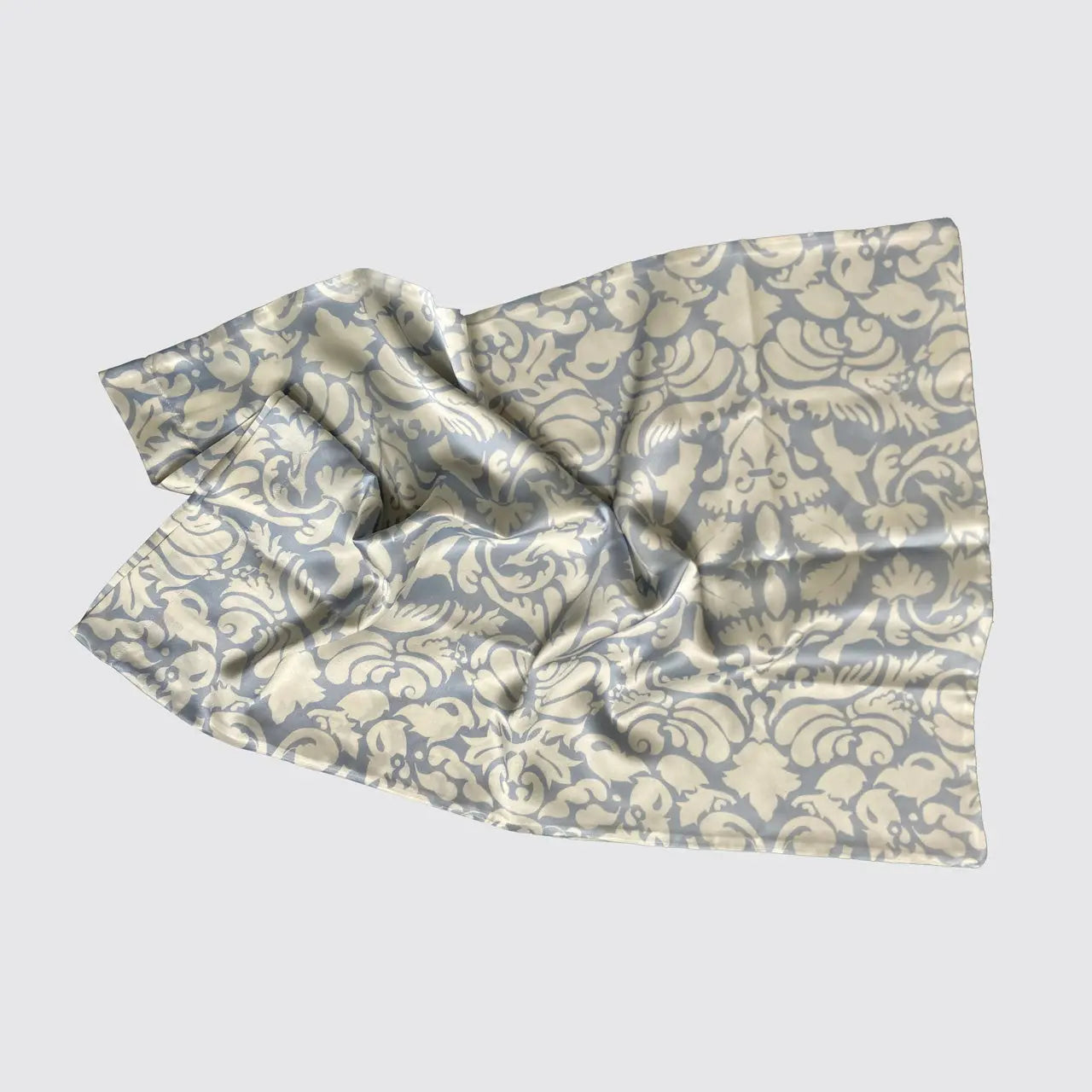 Silk Pillowcase - Pale Blue With White Hummingbird Damask Pattern