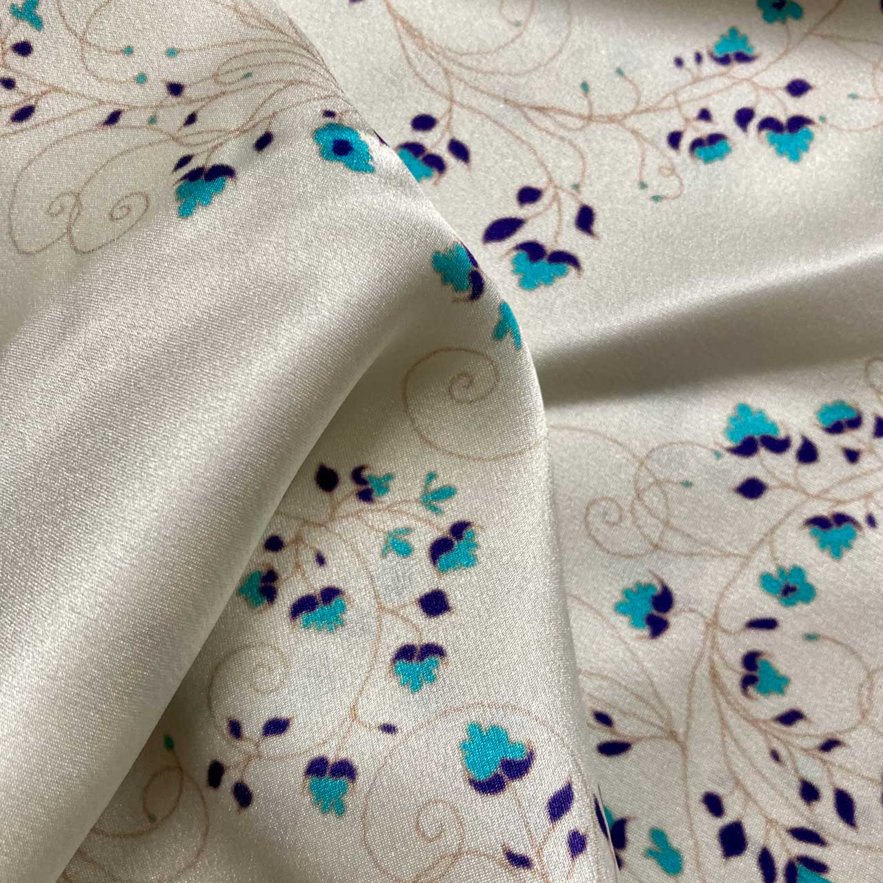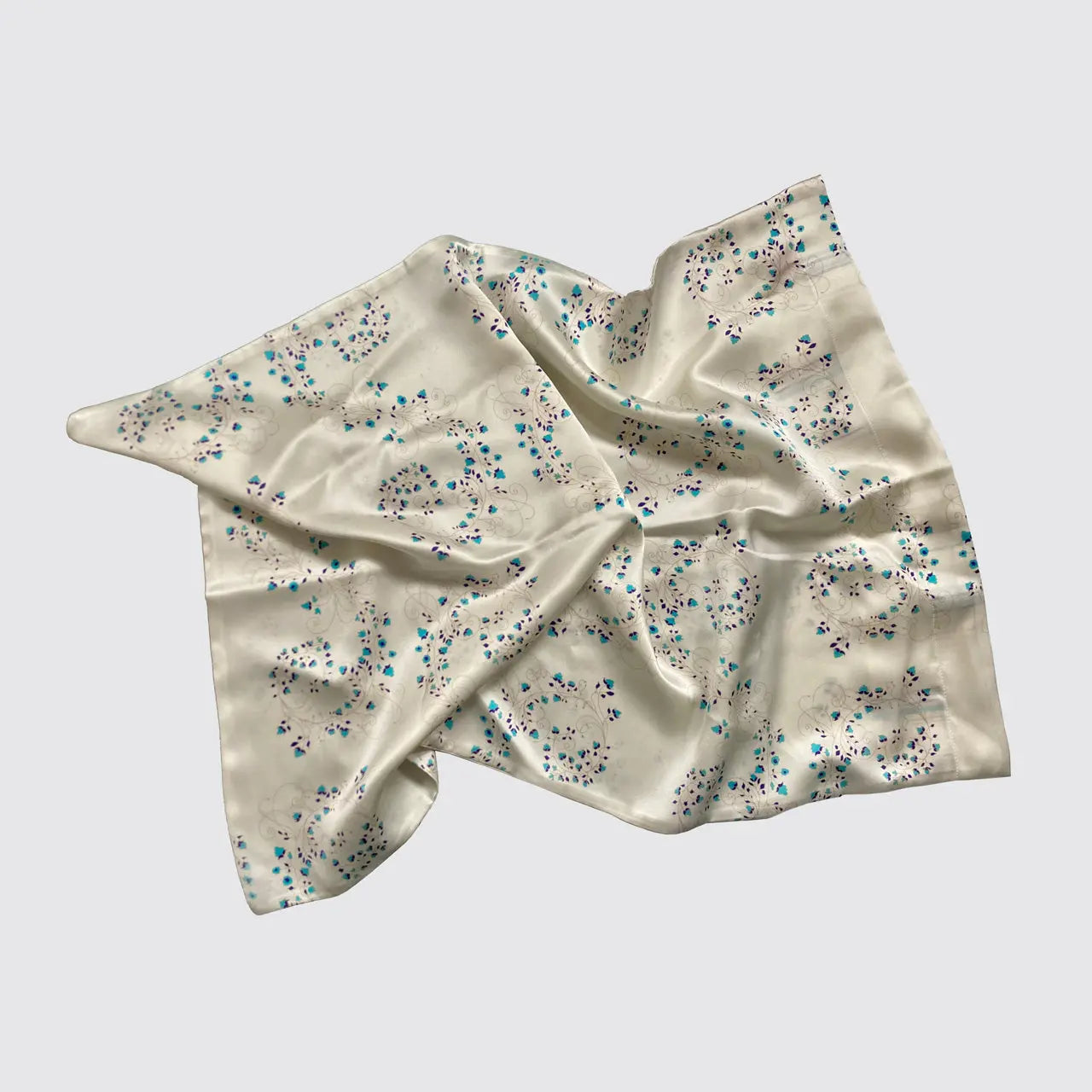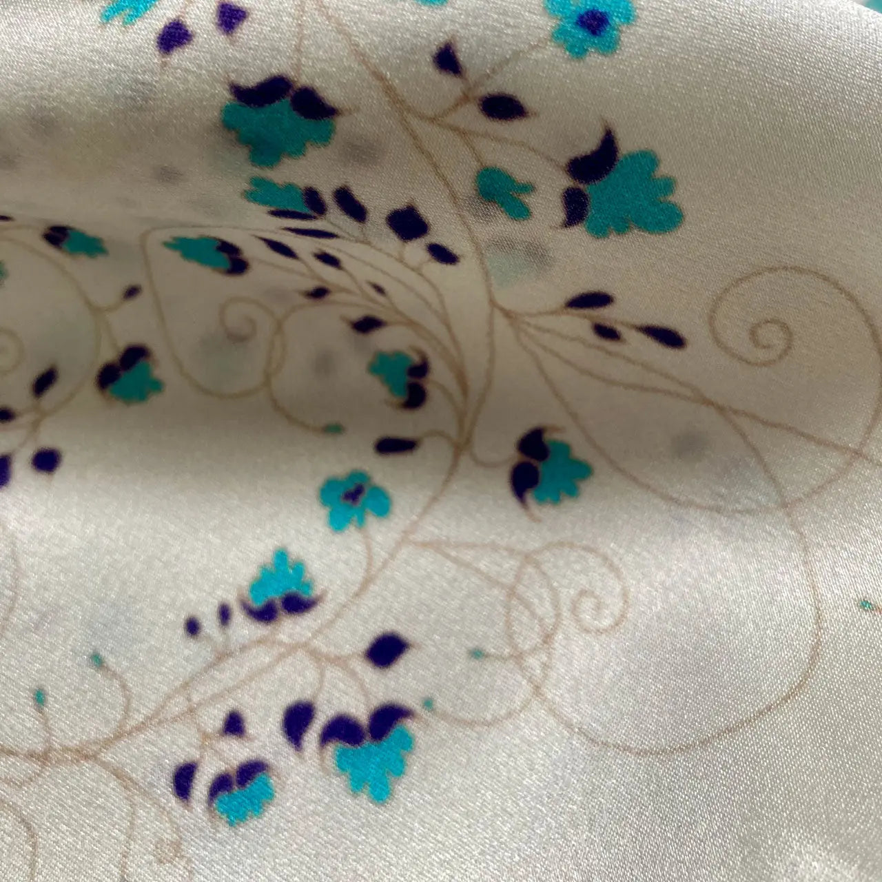 Experience the luxurious benefits of sleeping on a silk pillowcase. This white pillowcase features turquoise flowers, providing a beautiful aesthetic and smooth texture. It is hypoallergenic and breathable qualities help maintain even temperatures, reducing wrinkles and split ends. Enjoy a more comfortable and restful night.