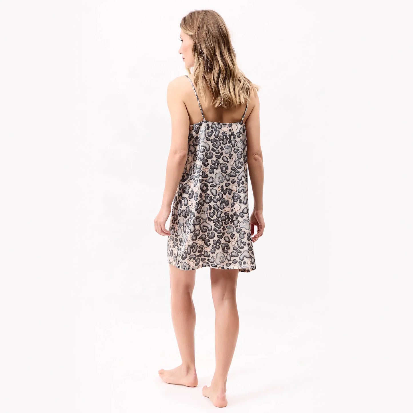 The Animal Print Slip Dress is made from 100% Mulberry Silk for a look that feels as good as it looks. Its clean, minimalist shape is complemented by a softly scooped neckline and adjustable straps, offering comfort and a custom fit.