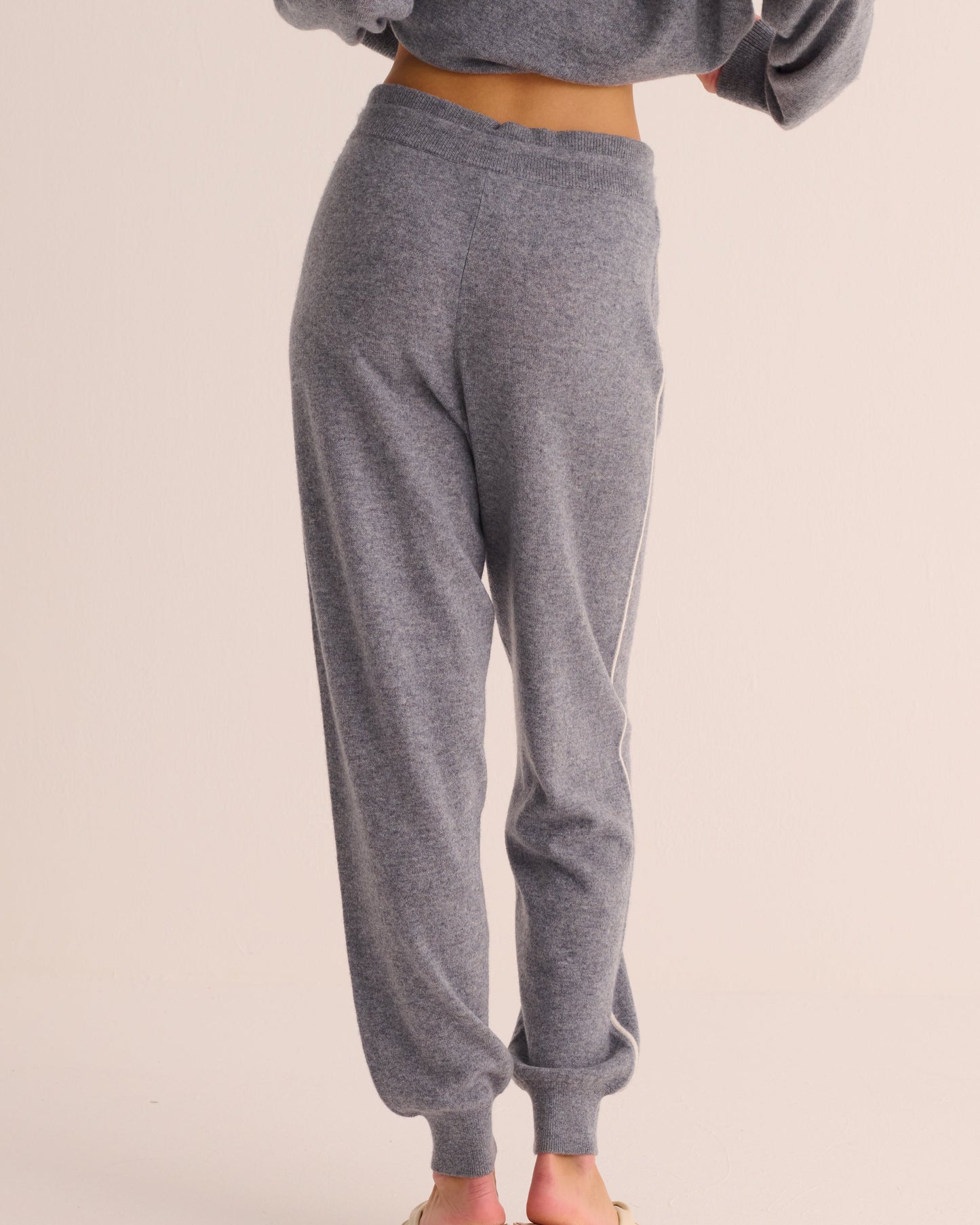 Silver Grey Cashmere Cuffed Ankle Joggers with Ivory Contrast
