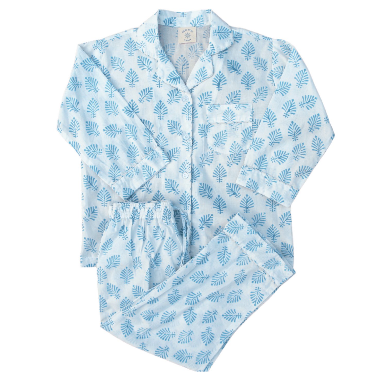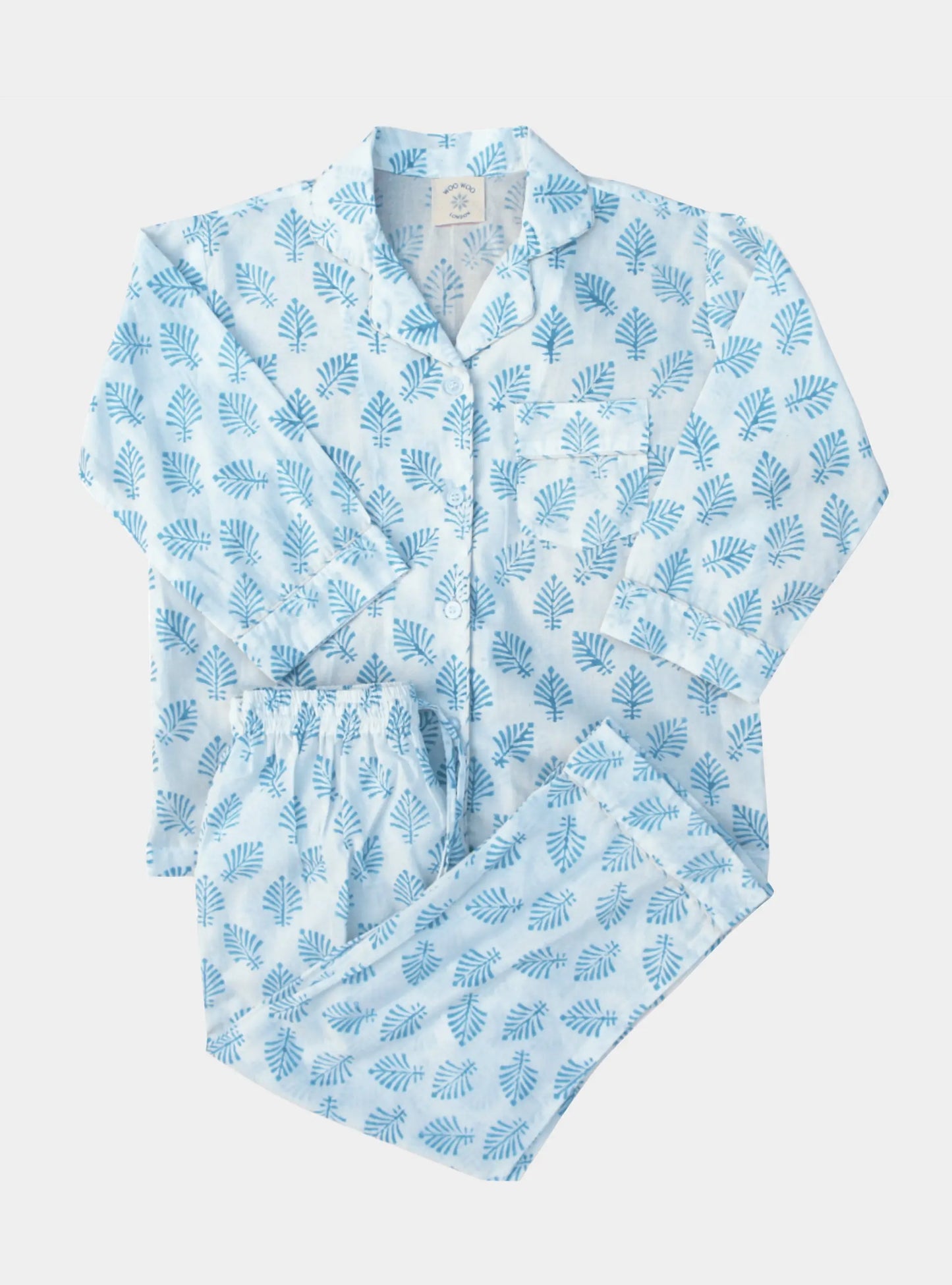Leaf Block Print Cotton Pyjamas – Soft, Classic & Comfortably Stylish