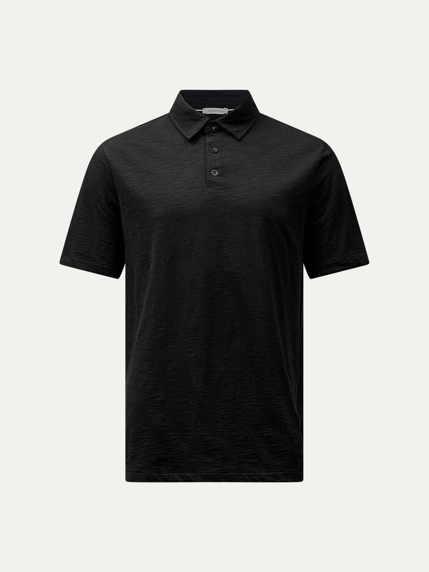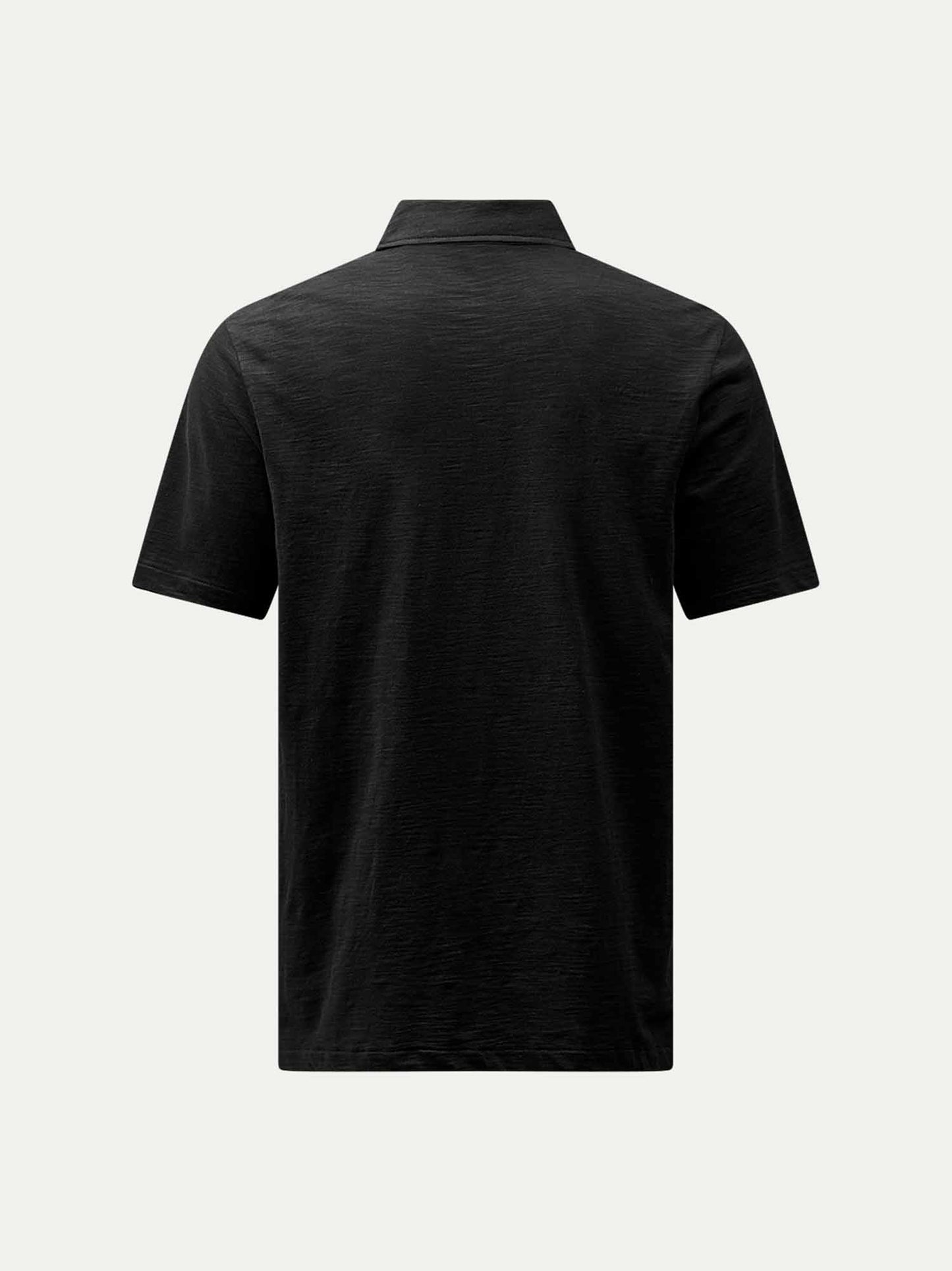 Clean lines. Textural finish. This short sleeve polo is cut from slub cotton jersey for a refined take on a casual essential. The fabric’s subtle irregularity adds character while keeping things breathable and light. Finished with tonal detailing and a grown-on placket, it stands alone with ease and layers neatly under overshirts or jackets.