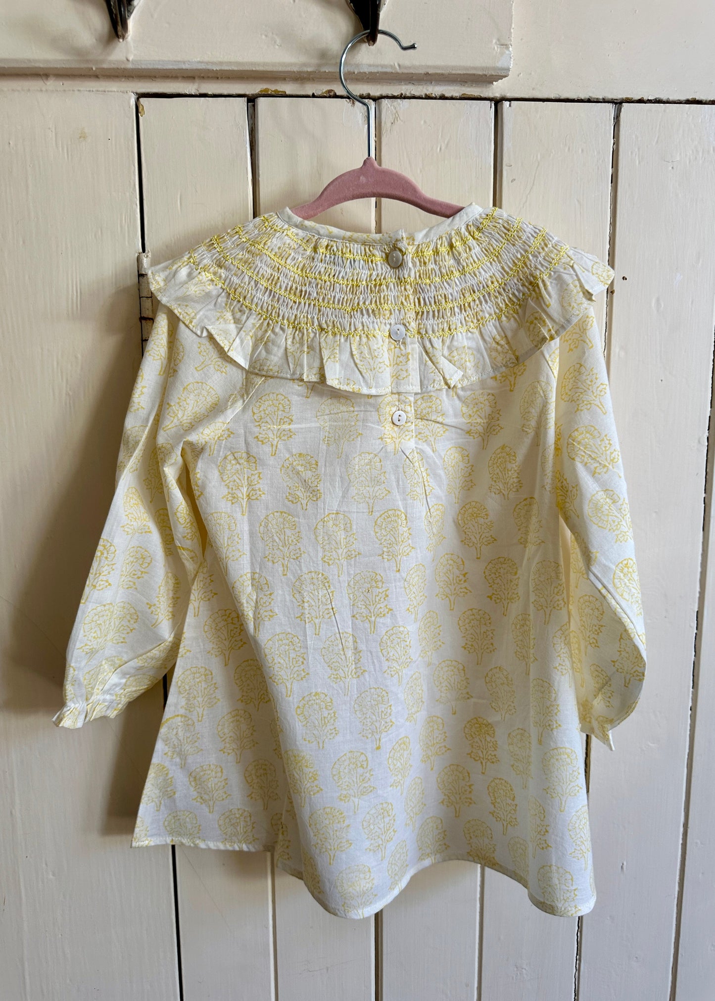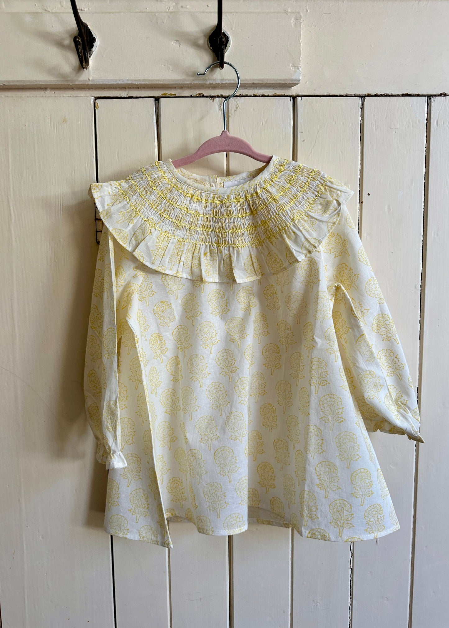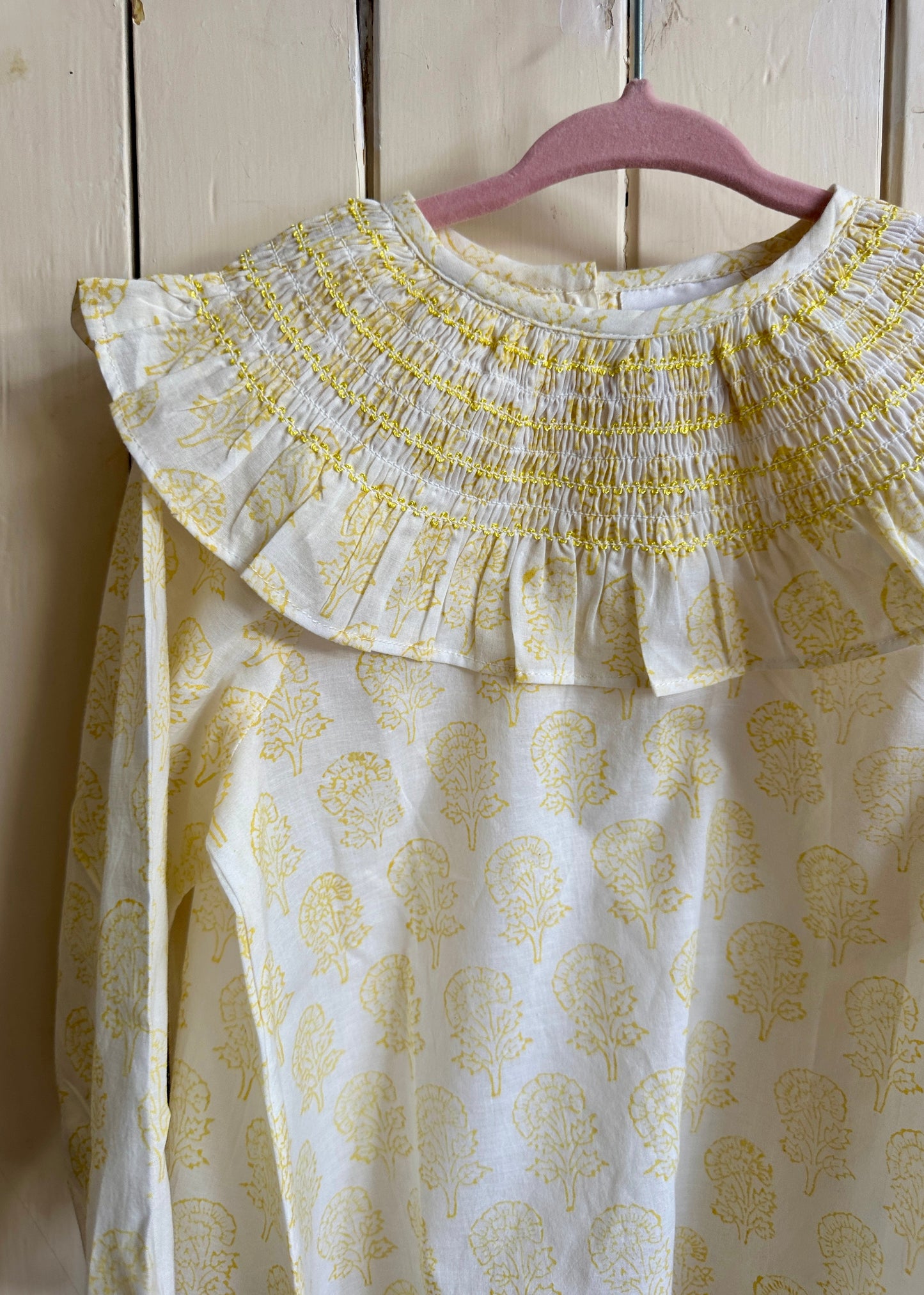 Our new smocked girls’ nighties are made to be worn from bedtime to playtime. Crafted from BCI cotton and hand block-printed in a delicate floral design, each one features a beautifully smocked frill collar and buttons down the back for a charming, easy fit.