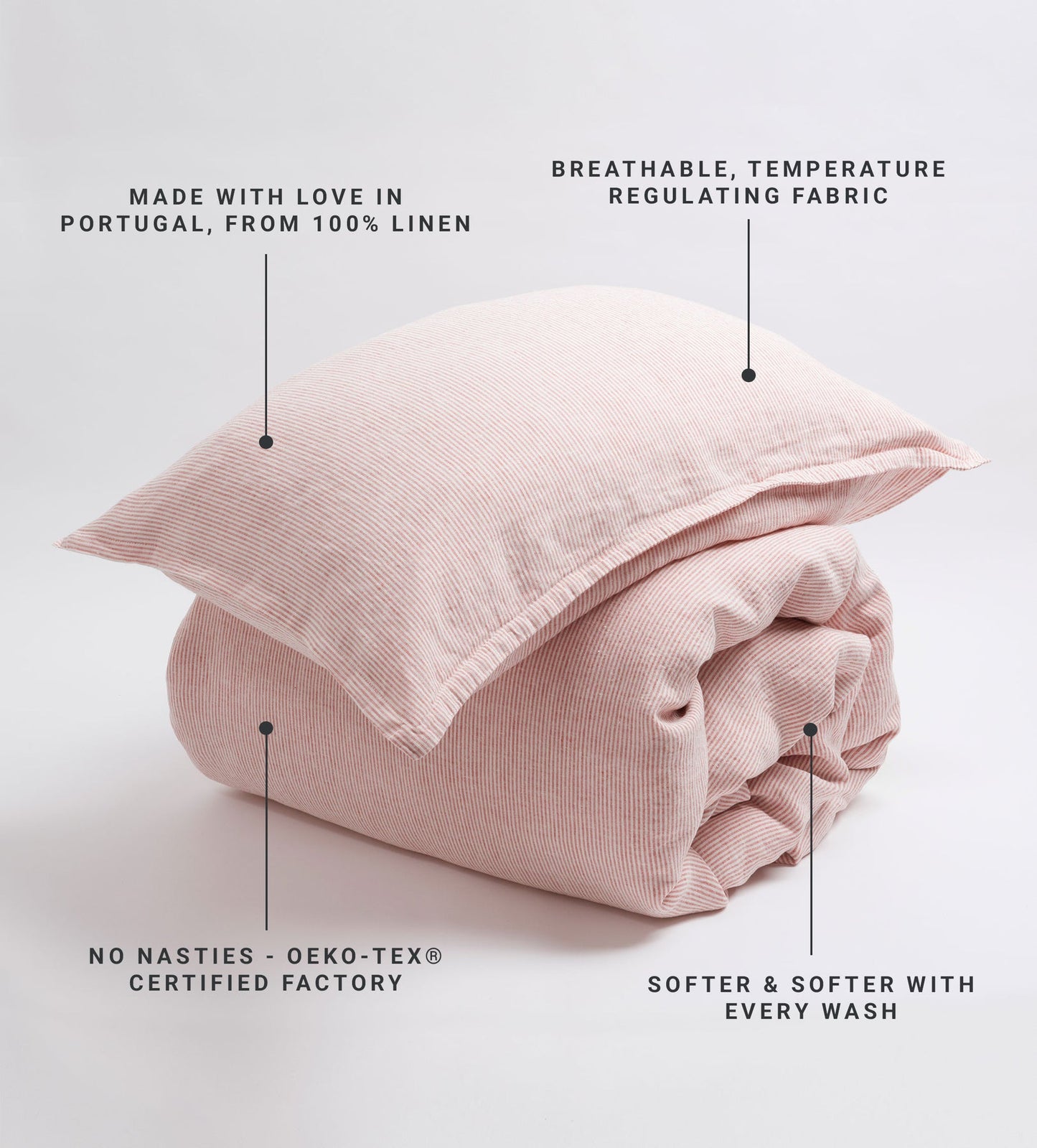 - European-grown flax – sourced from France, Belgium, and the Netherlands, with full traceability from field to finished fabric.
