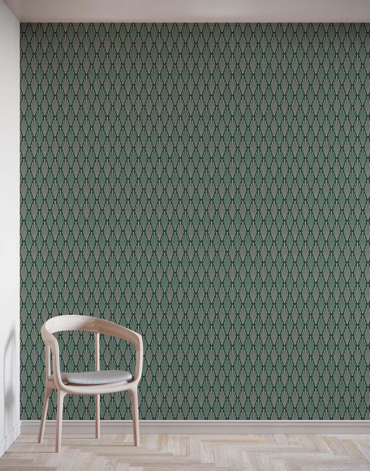 Strauss uses deep, cool colours to compliment the bold shell shapes to build a striking and effective Art Deco style wallpaper for those that want to go all out and hold nothing back.