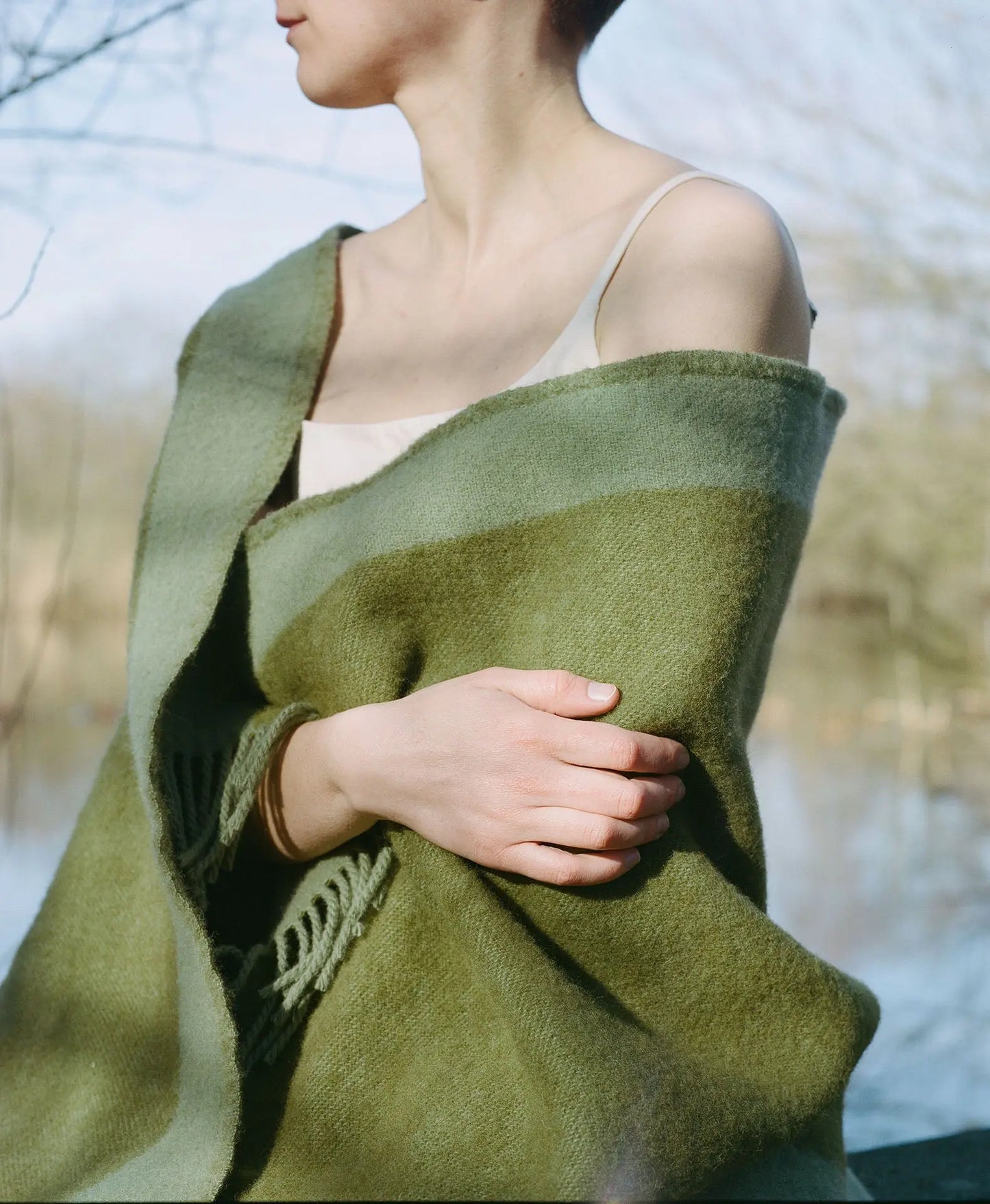 Generously sized, luxuriously thick, and beautifully woven, STREAM Moss Green offers exceptional comfort and versatility. Whether you’re cosying up indoors or enjoying the evening air outdoors, this blanket wraps you in softness and warmth. Its breathable wool construction makes it equally suitable for year-round use, blending practicality with timeless design.