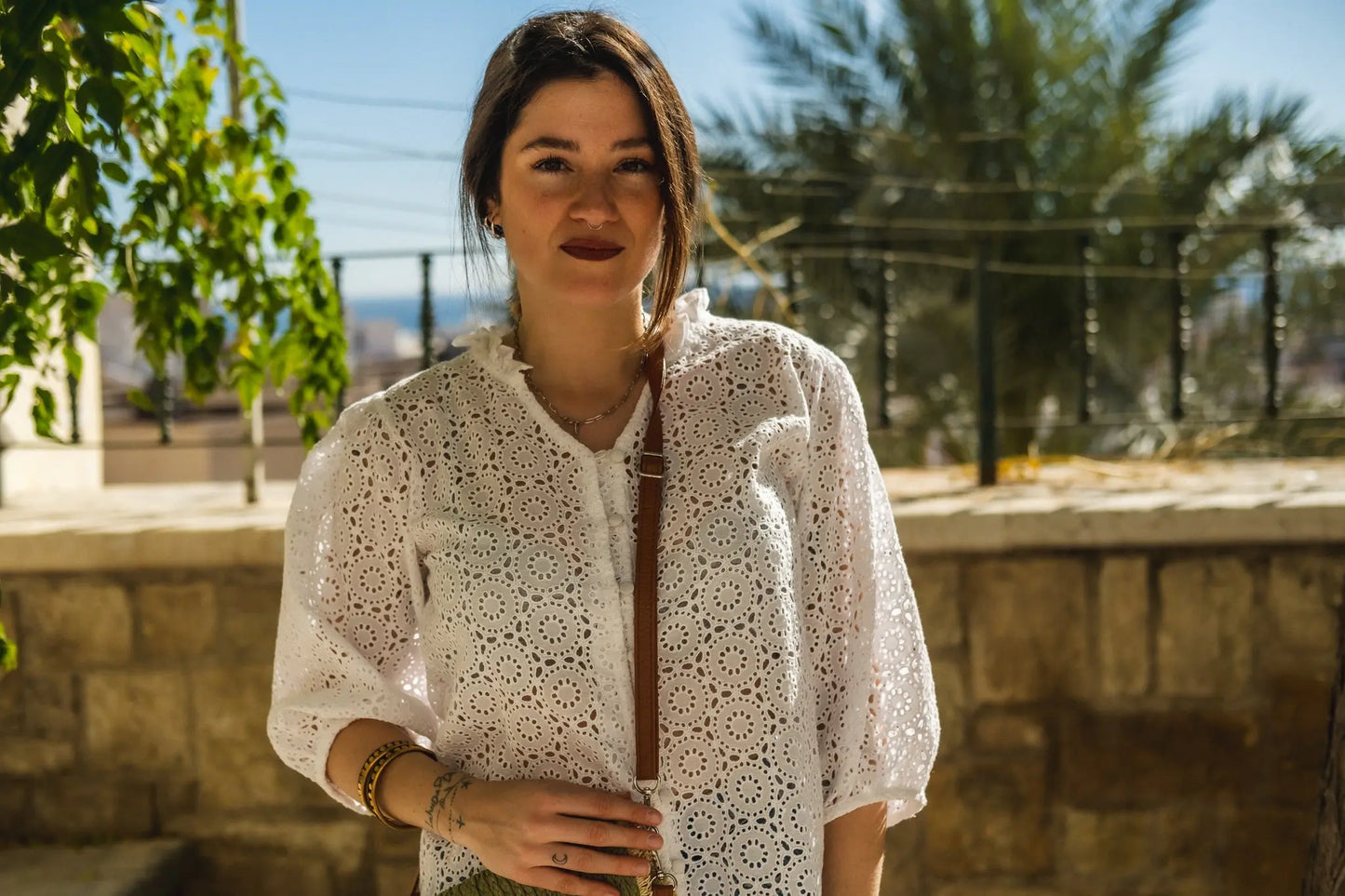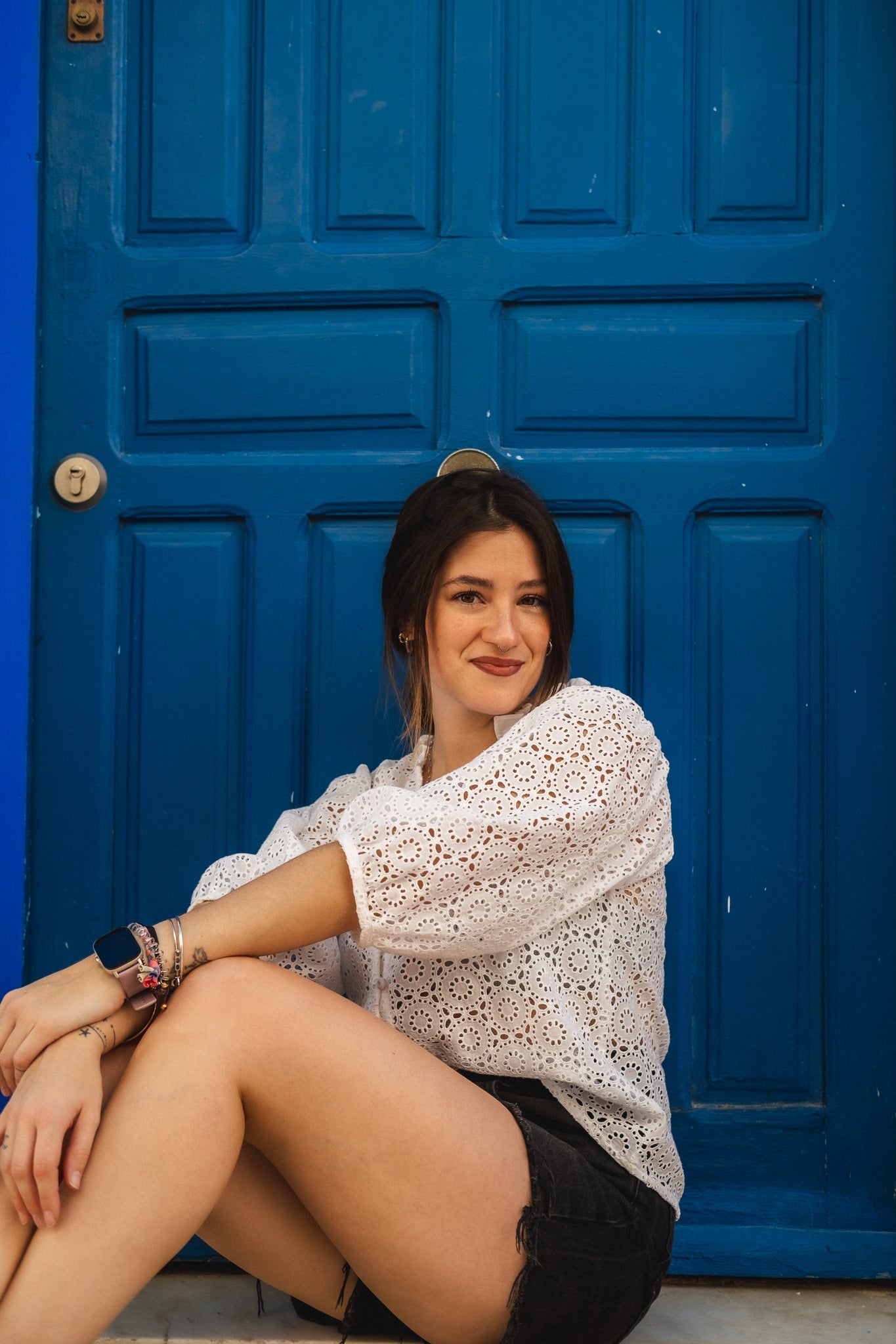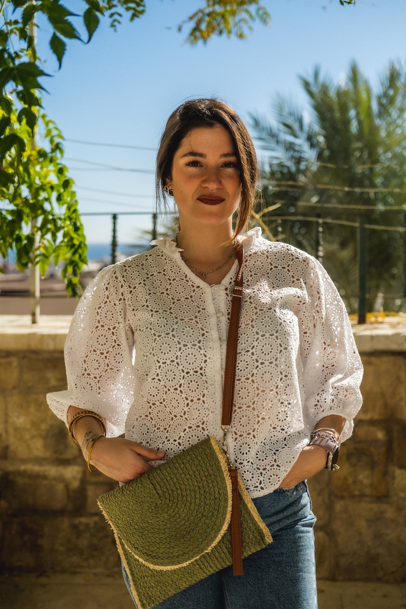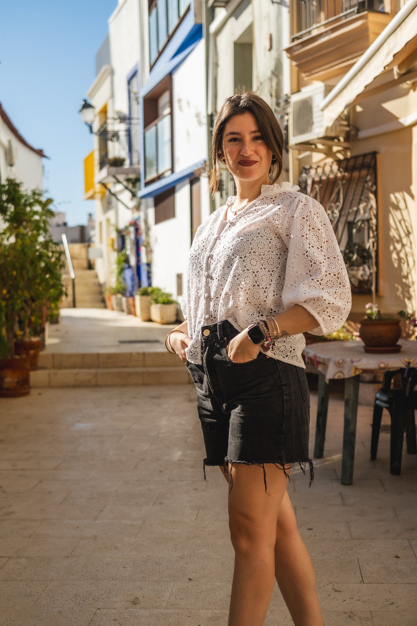 This blouse effortlessly embodies the French chic aesthetic, where everything appears effortlessly fashionable. Pair it with tailored shorts and espadrilles for a sophisticated yet relaxed daytime ensemble that exudes Parisian flair. Alternatively, opt for denim shorts and sneakers for a casually chic look that's perfect for leisurely strolls or brunch with friends.