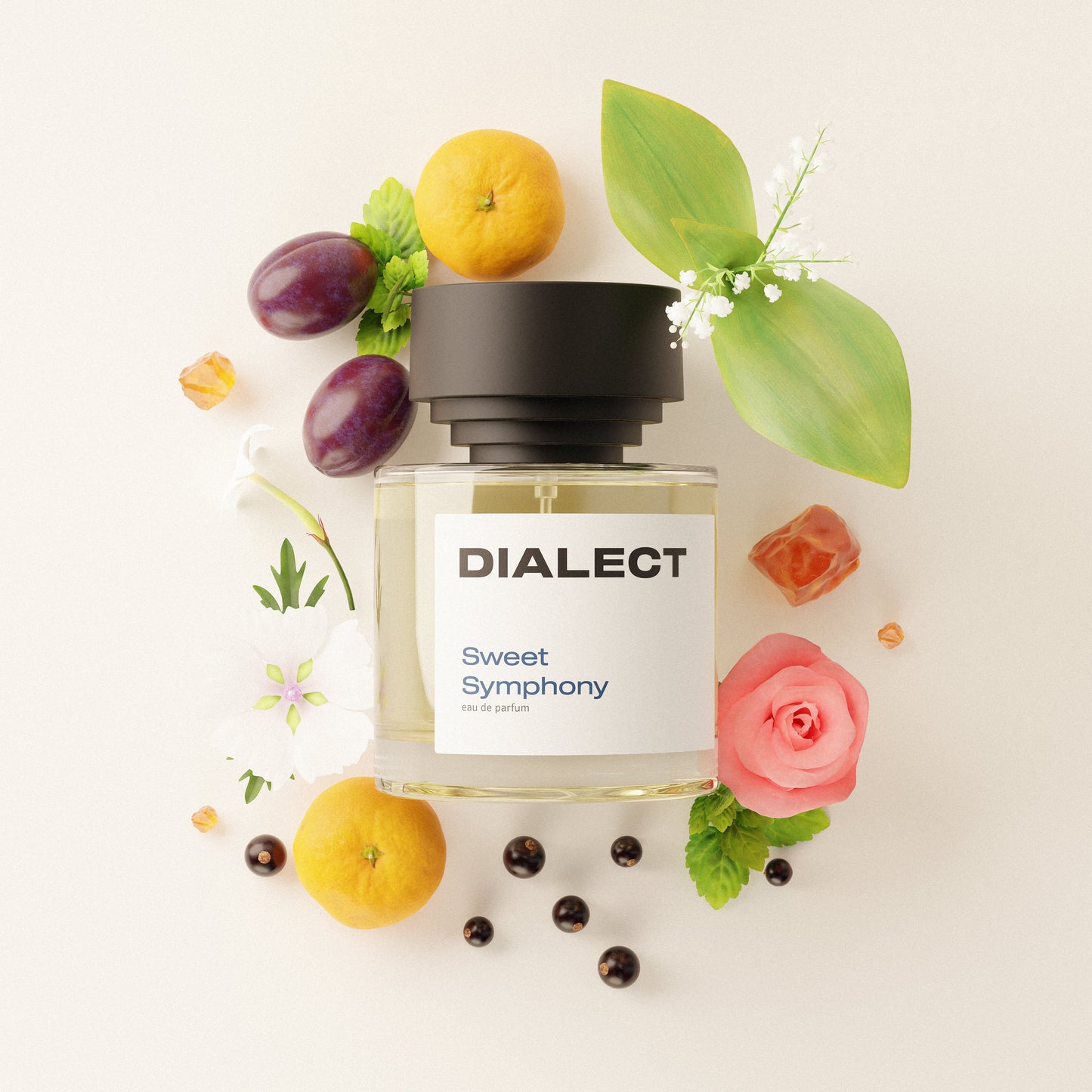 A fruity and explosive accord of zesty blackcurrant, mandarine and juicy plum awakens a floral union, sign of love. Green jasmine, airy lily of the valley, vibrant hyacinth and bright white florals reflect this optimism. The melody of Sweet Symphony, inspired by the scents of Miss D continues with notes of powdery amber and soft white musks, working in harmony with deeper notes of moss and patchouli.