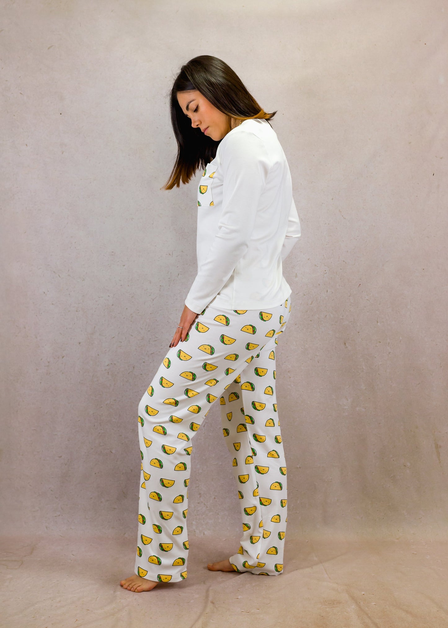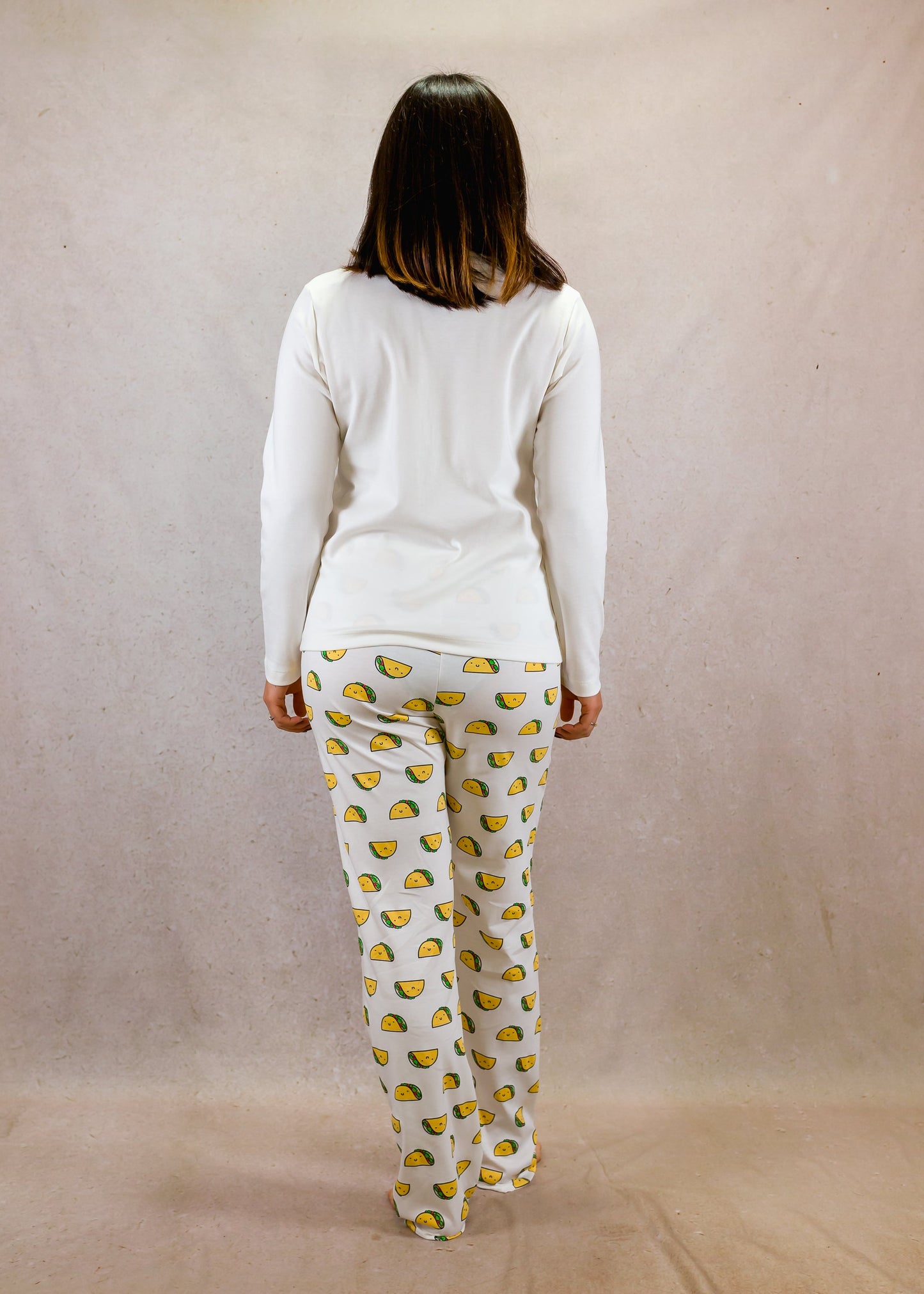 Tacos & white Women's Pima Cotton Long Sleeve Pyjama Trouser Set