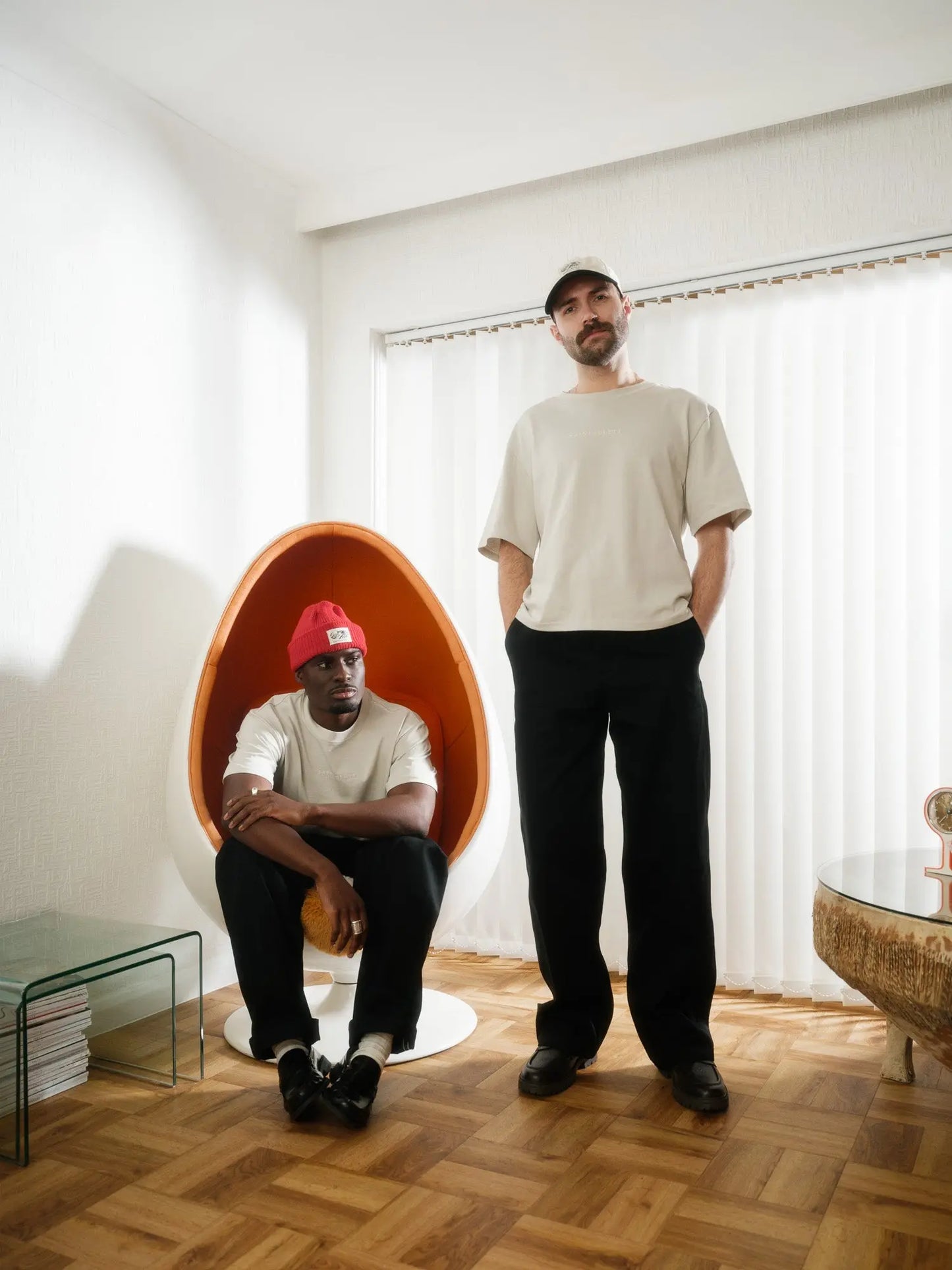 Tee 001 in Bone - Our signature silhouette. Crafted by hand in Leicester by our third generation family-owned factory to our exacting standards. 300gsm heavyweight jersey knitted from 100% cotton, with a dense, structured feel. Featuring SAINTABLETT logo embroidered to the centre with tonal thread, providing subtle, yet premium branding. Perfectly cropped for the ideal boxy fit, with woven SAINTABLETT labelling to the inner collar. Custom knitted and dyed cloth for a unique colourway and finish. Pair with TROUSER 001 for a complete look.