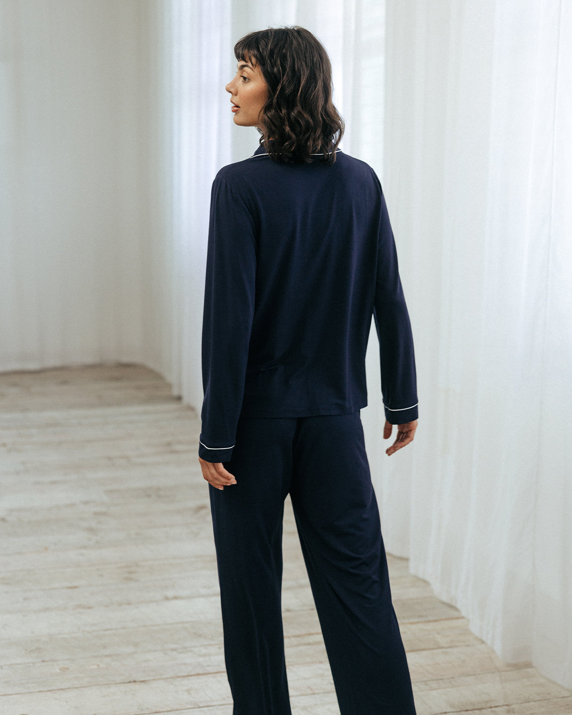 TENCEL™ Modal Long Button Up Pyjama Set - Navy