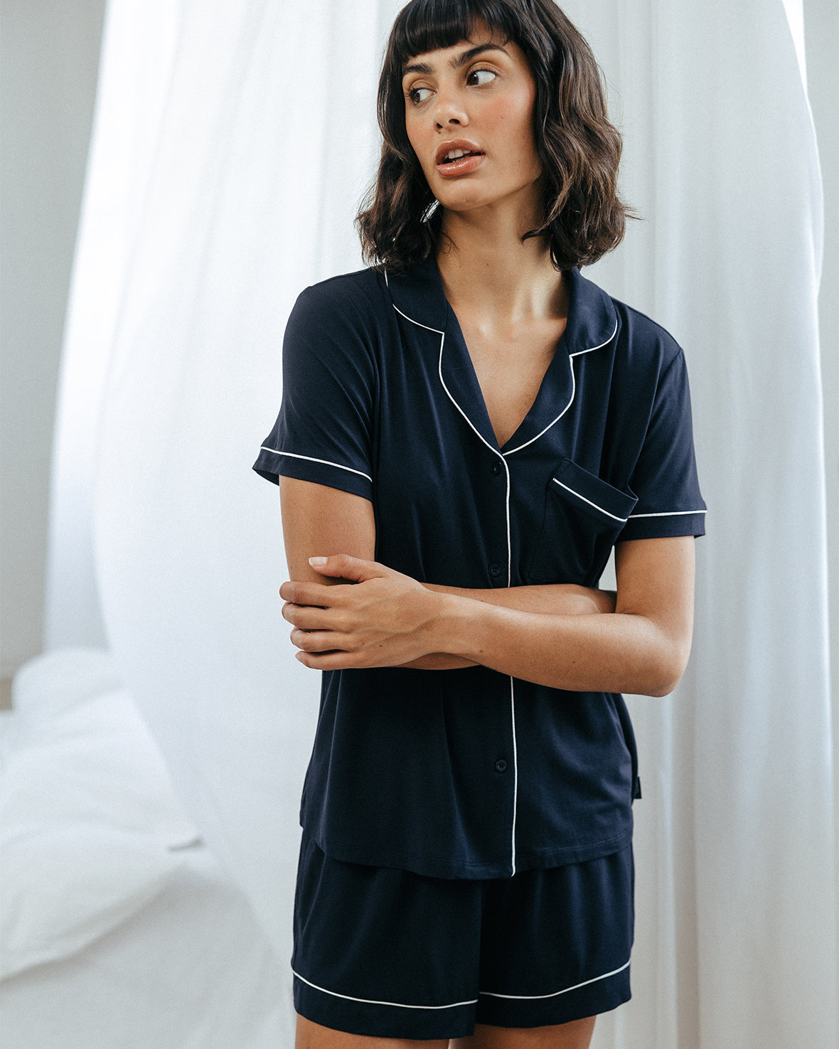 Navy Women's TENCEL™ Modal Short Button Up Pyjama Set