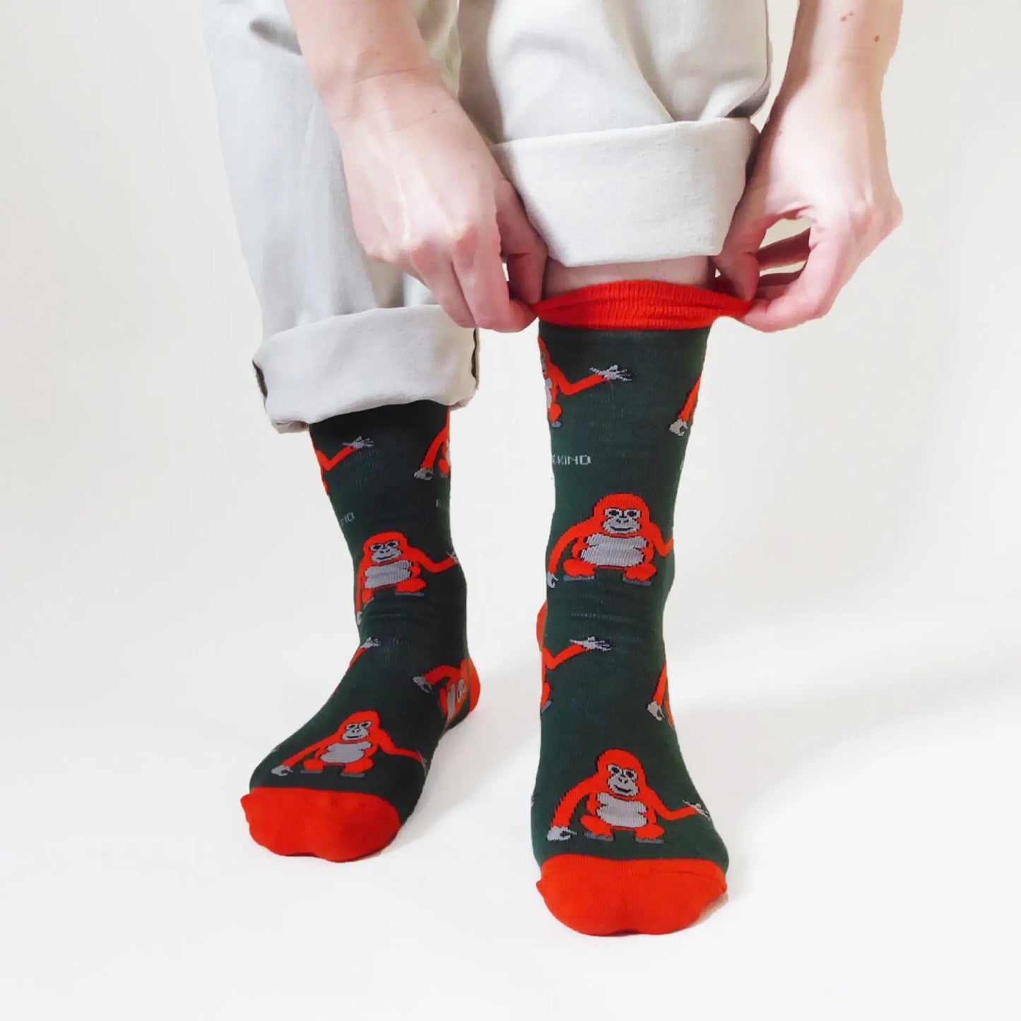 This Ape Bundle of bamboo socks contains 2 pairs of animal socks featuring apes from our collection. They are excellent quality, soft, and comfortable novelty socks that make great work socks, gym socks, and running socks; the perfect thoughtful gift for animal lovers.