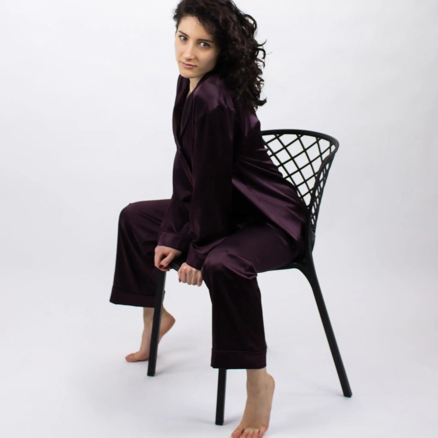 The Lady shirt by NOKAYA is crafted from luxurious 19 momme Mulberry silk, produced by dedicated farms where the silkworms feed on organic mulberry leaves. The shirt features a relaxed straight cut for night-long comfort.