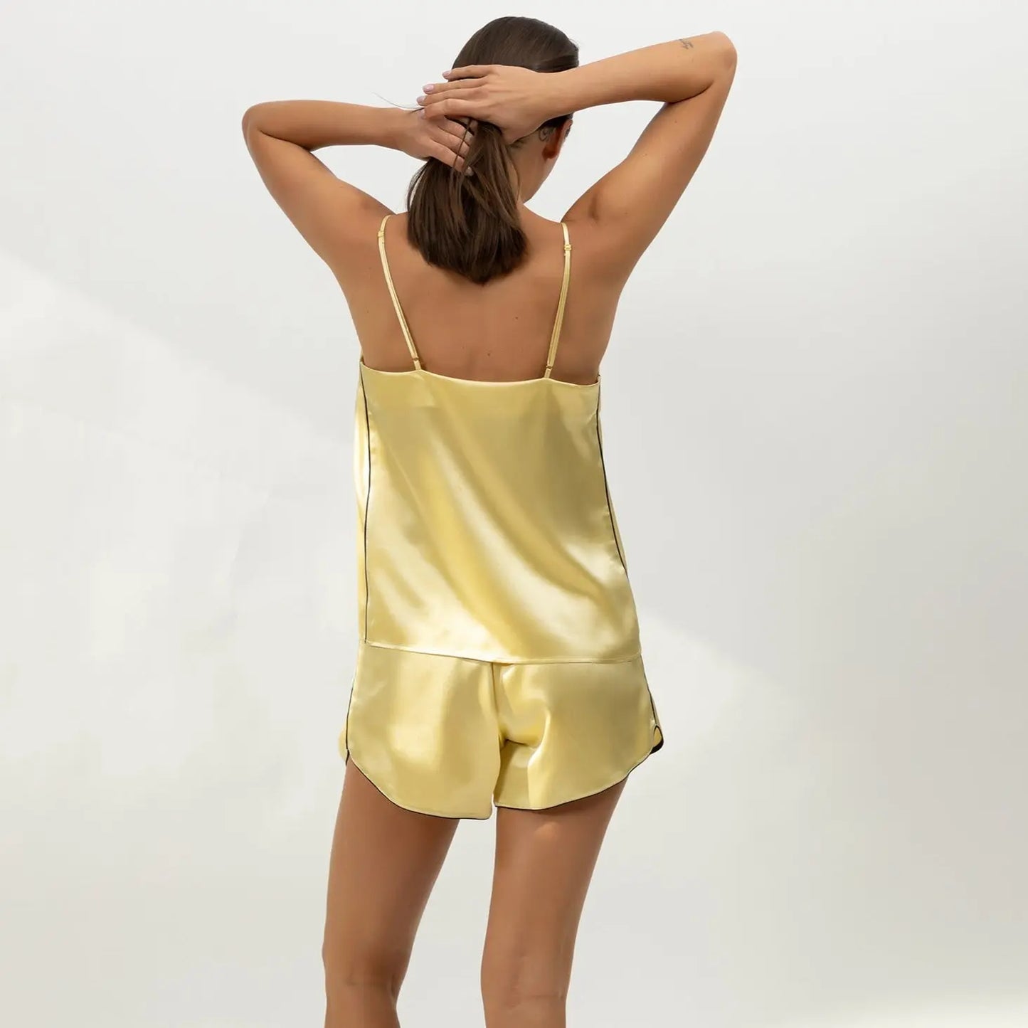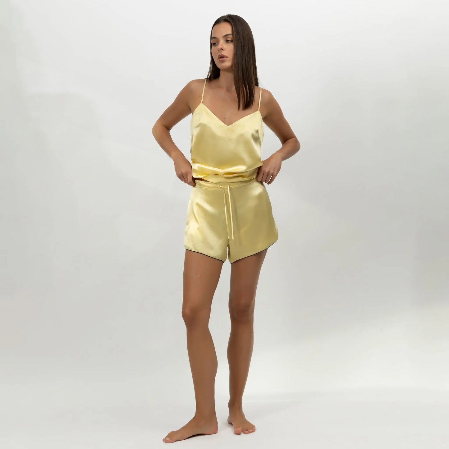 Regular price £47.60The Lady Shorts offer a fresh take on silk loungewear - soft to the skin and smart in silhouette. They balance comfort with a quiet structure with a mid-rise cut and elasticated waistband.