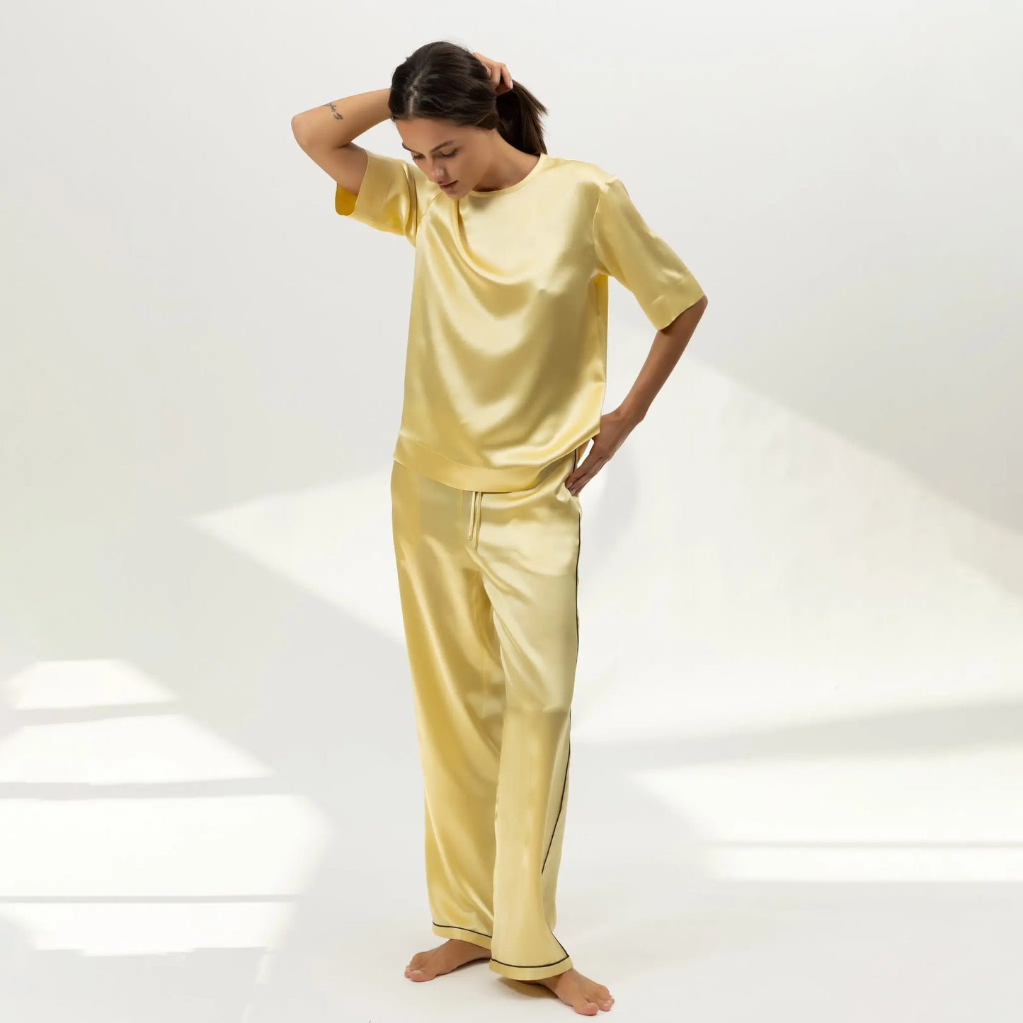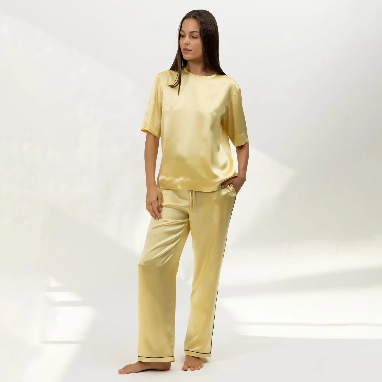 A modern classic in fluid Mulberry Silk, The Lady T-shirt brings effortless ease to everyday dressing. It features a clean crew neckline and relaxed drape, designed to gracefully slip into your routine.
