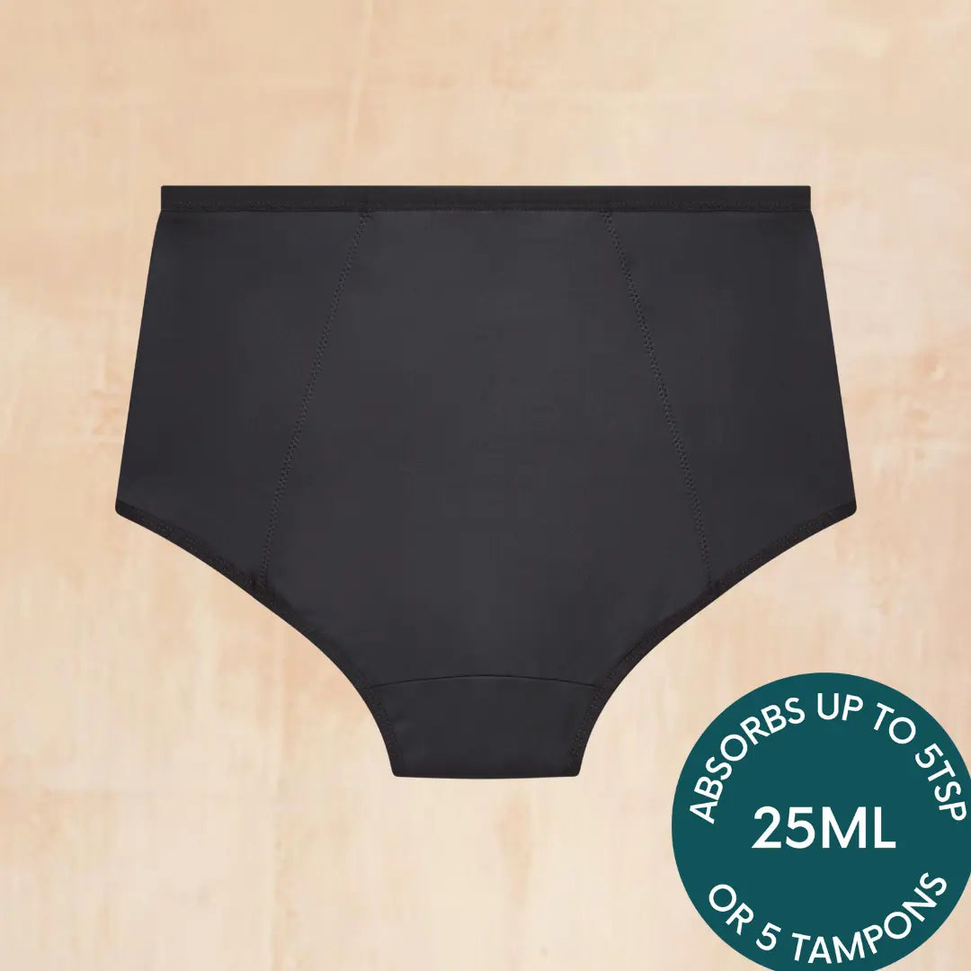 The four layers of discreet, absorbent gusset hold up to 25ml (around 4–5 tampons worth of blood). These knickers can replace or be worn alongside pads or tampons, giving leak-free protection for: