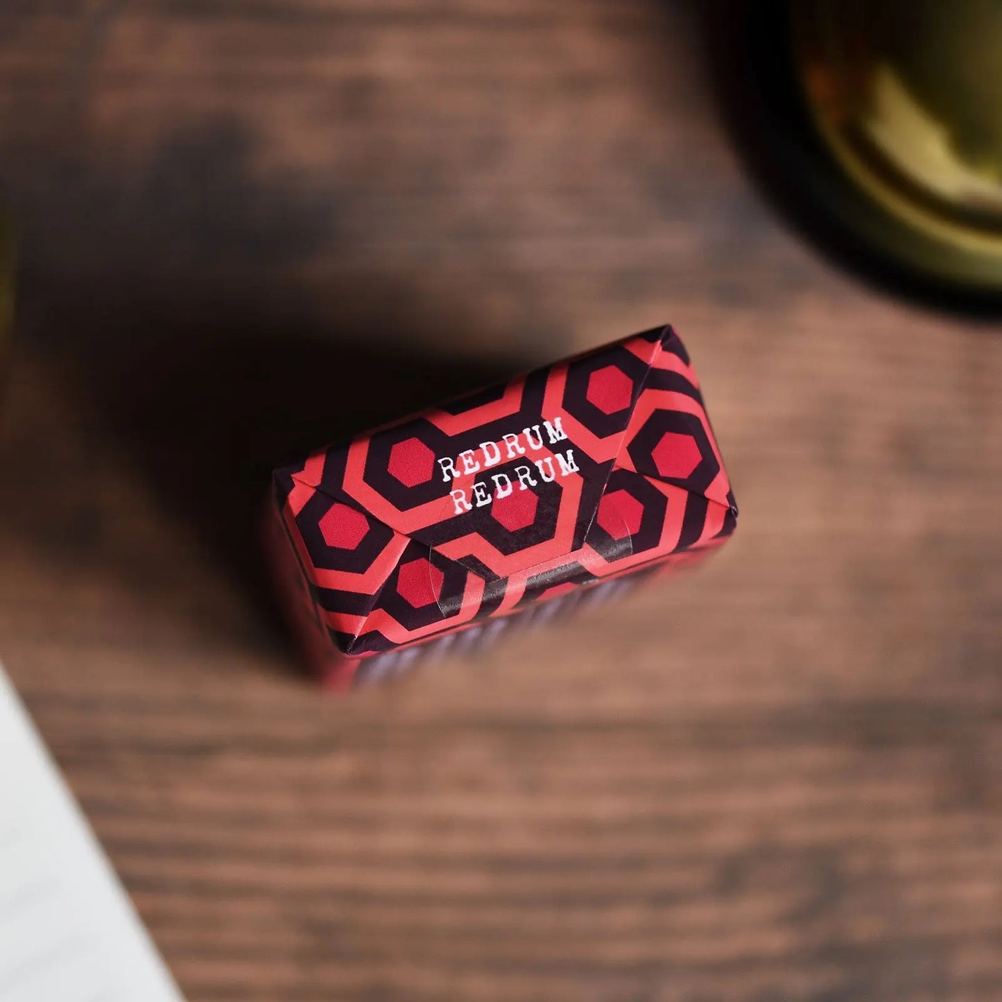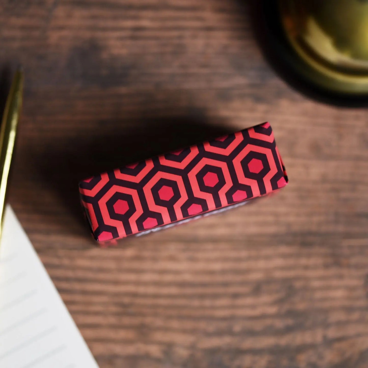 The iconic carpet-inspired packaging is packed with references to the Stanley Kubrick classic, making it a perfect gift for fans of the classic horror.