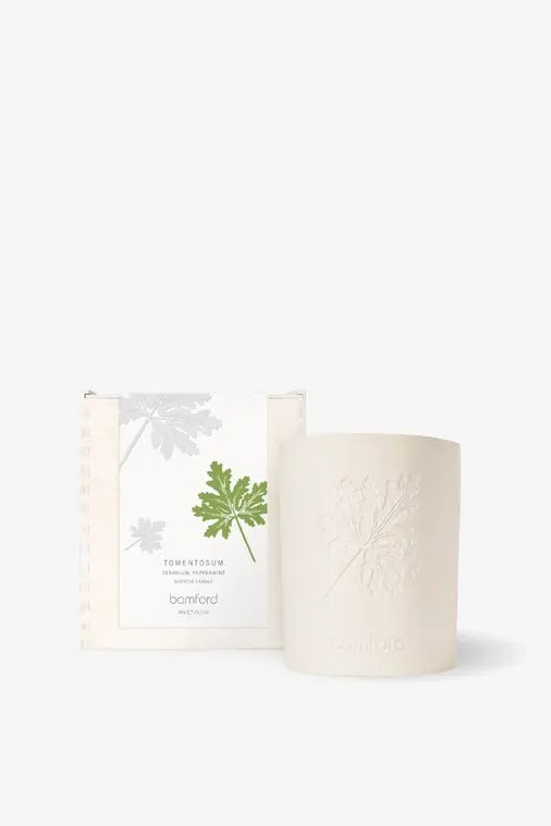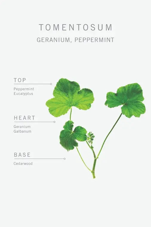 Celebrating the purity of elegant Pelargonium Tomentosum, this candle blends invigorating minty freshness with soft floral warmth. Created by Elizabeth Dowden, the fragrance opens with uplifting peppermint and eucalyptus, before unfolding into a heart of geranium and galbanum. A grounding cedarwood base adds depth and earthy warmth, leaving a refreshing yet calming scent that lingers.