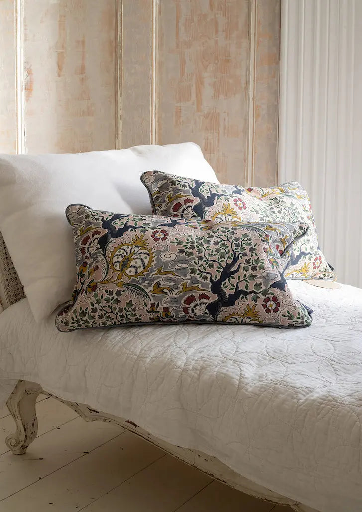 The pomegranate fruit is symbolic of fertility, beauty & eternal life and can be found on the abundant Tree Of Life. Originally designed in 1929, this French textile design is truly alive with symbolism and good fortune.