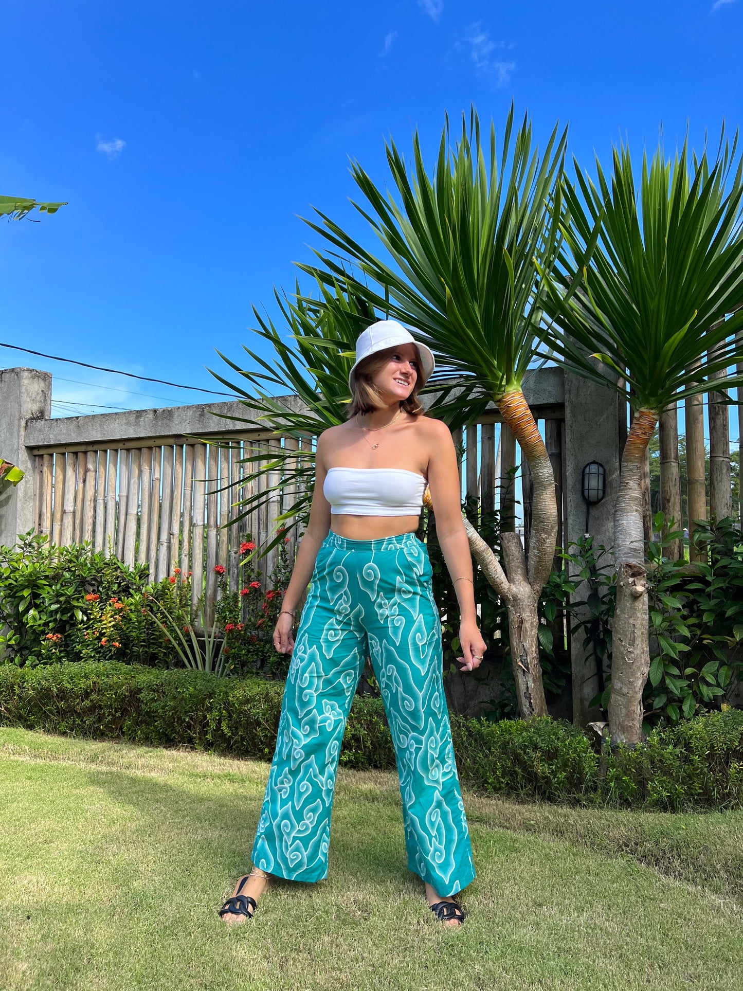 Regular price £19.99Be on cloud 9 with these statement trousers. Styled in a aqua tone, these gorgeous trousers feature a stunning cloud batik print for added style points, an elasticated waistband for a personalised fit and the all-important side pockets for your essentials. Crafted from a super soft and lightweight material, they're destined to be a favourite in your wardrobe this spring/summer.