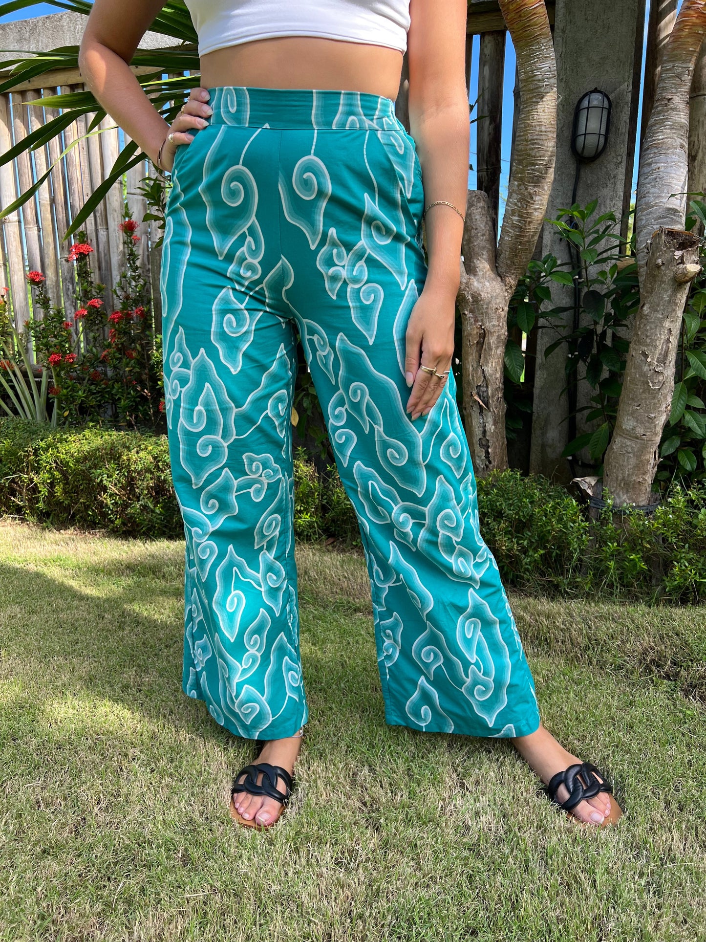 Be on cloud 9 with these statement trousers. Styled in a aqua tone, these gorgeous trousers feature a stunning cloud batik print for added style points, an elasticated waistband for a personalised fit and the all-important side pockets for your essentials. Crafted from a super soft and lightweight material, they're destined to be a favourite in your wardrobe this spring/summer.