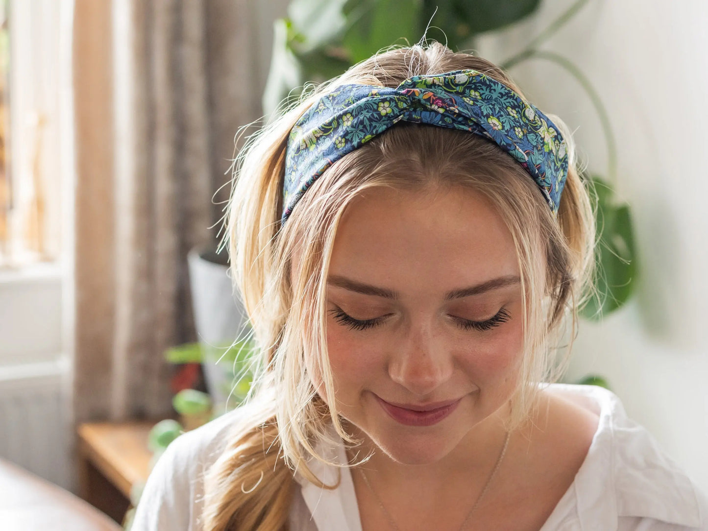 Our latest Liberty print twist headband has been thoughtfully redesigned for even greater comfort and versatility. Now featuring two lengths of fabric looped together to create a central twist, this new structure allows you to wear it opened out wider for a different look. We’ve also added wider elastic at the back for a more secure and comfortable fit throughout the day.
