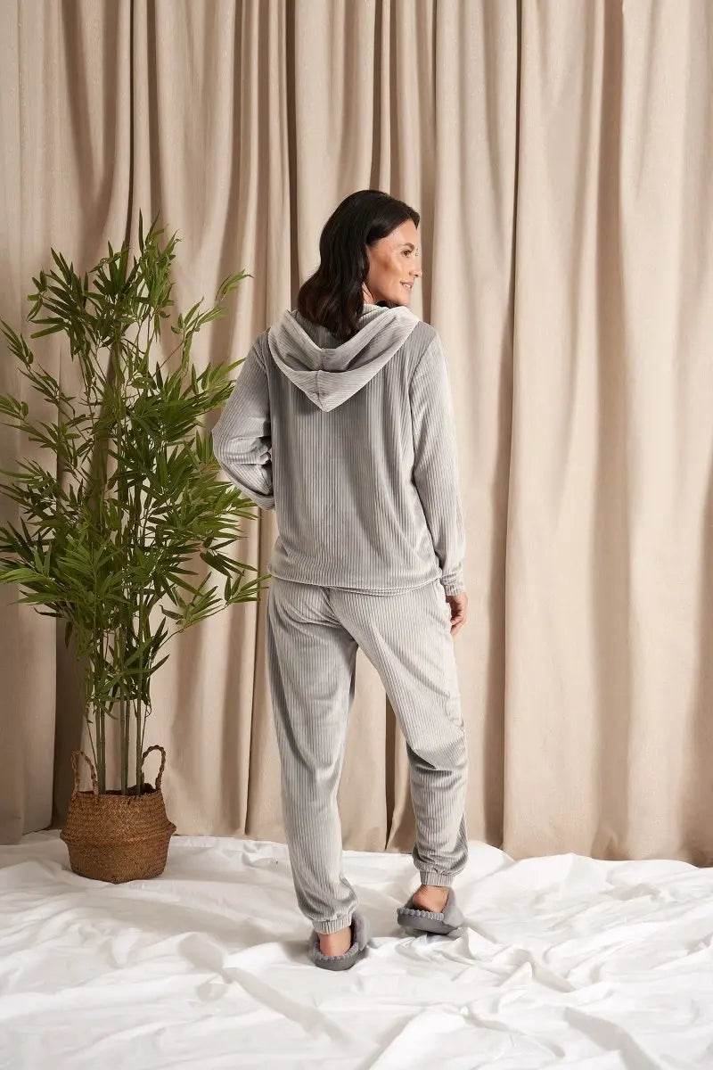 Step into luxury with our Velour Lounge Set, featuring a zip-up hoodie crafted from premium ribbed velour material. This set ensures unparalleled comfort and style, with long cuffed sleeves for added cosiness and full-length cuffed bottom trousers that complete the sophisticated look. The metal zip, adorned with a feature round zip pull, adds a touch of elegance and functionality to the hoodie. Elevate your loungewear collection with the Velour Lounge Set, where premium materials meet impeccable design, offering both comfort and effortless chic.