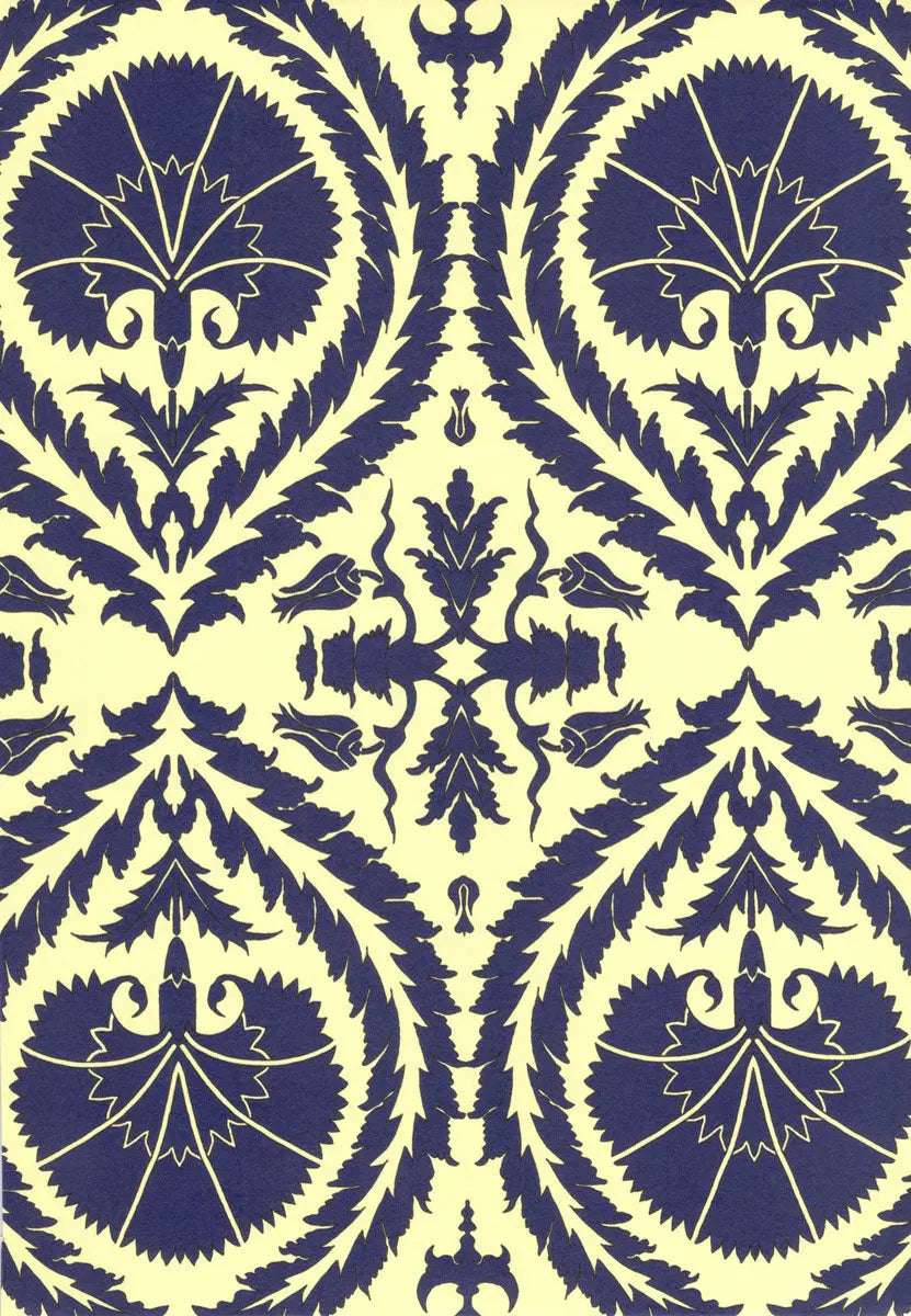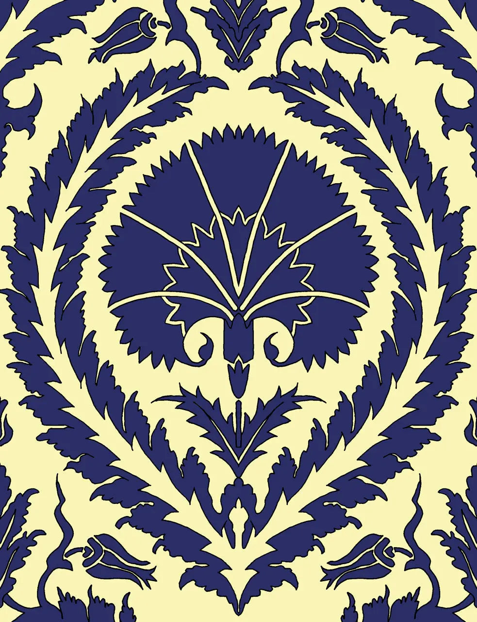 Wallpaper Acanthus and Wreath Blue On Yellow - £37.50 per sq metre