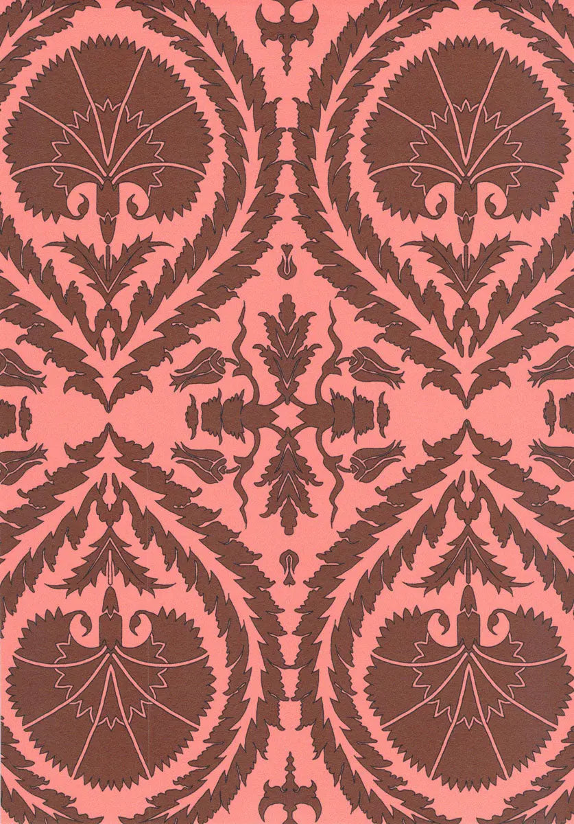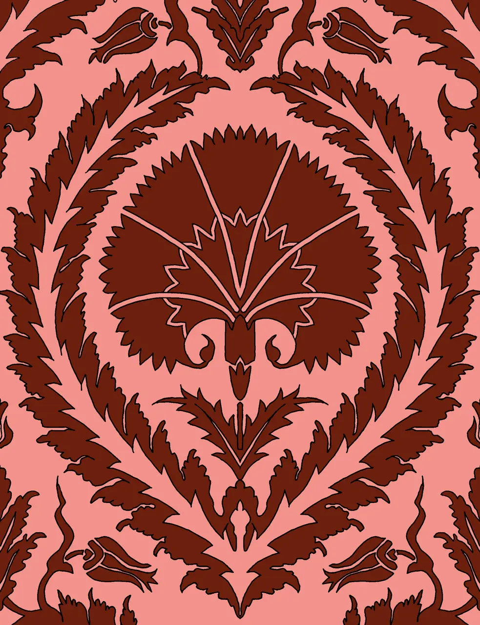 Repeat Patten Wallpaper Burnt Red on Pink: