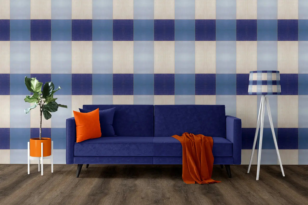 Wallpaper Blue Gingham - £37.50 per sq metre