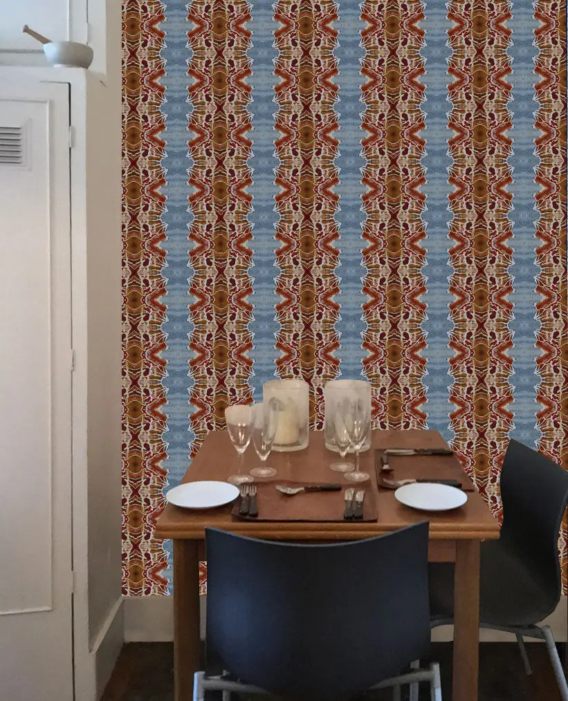 Wallpaper Orange and Blue Rose Abstract - £37.50 per sq metre