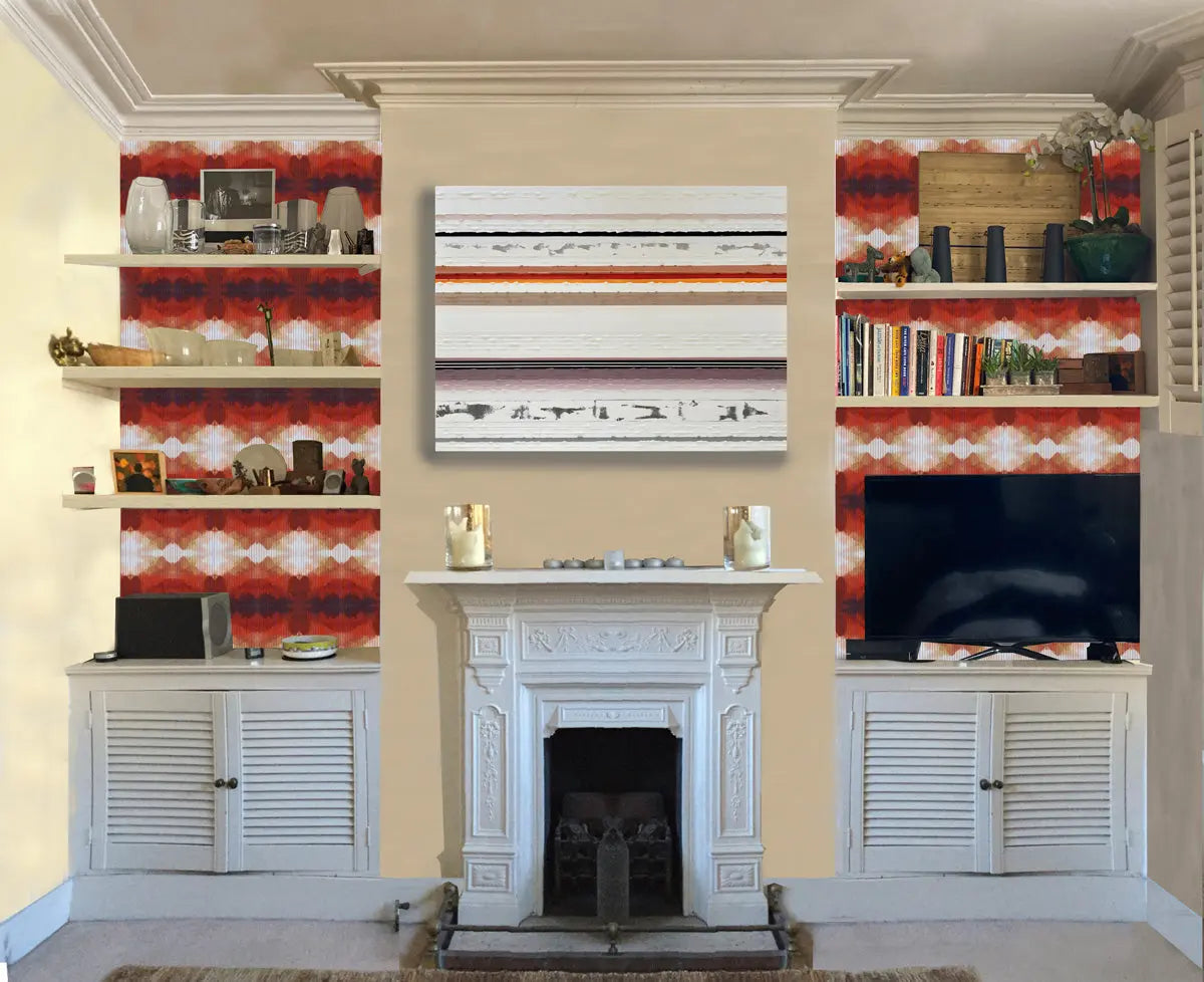 Welcome to the sublime world of Wallpaper Parallel Clouds. Crafted with exquisite care, this dynamic wallpaper presents a mesmerising abstracted cloud design in a sultry combination of deep orange and red with subtle parallel lines. Transform your home in seconds with this exceptional, luxurious wallpaper.