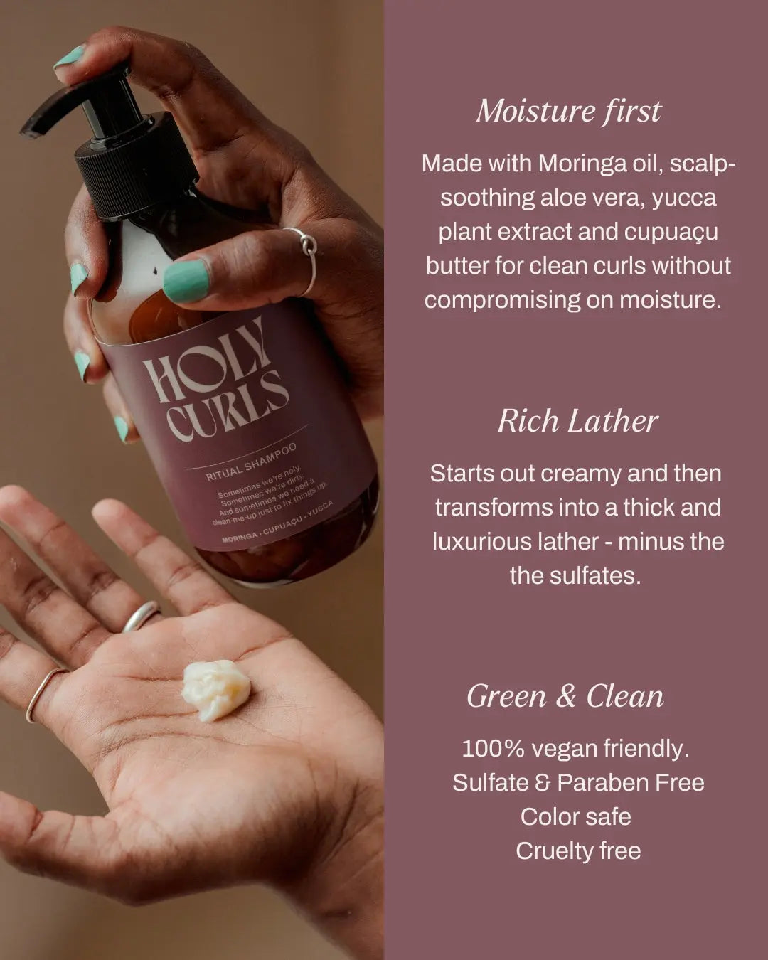 The Shampoo creates a rich, creamy lather that cleanses your curls without stripping away moisture. Packed with Moringa oil, Cupuaçu butter, and Yucca extract, it nourishes, strengthens, and gently purifies, leaving your hair soft and refreshed.