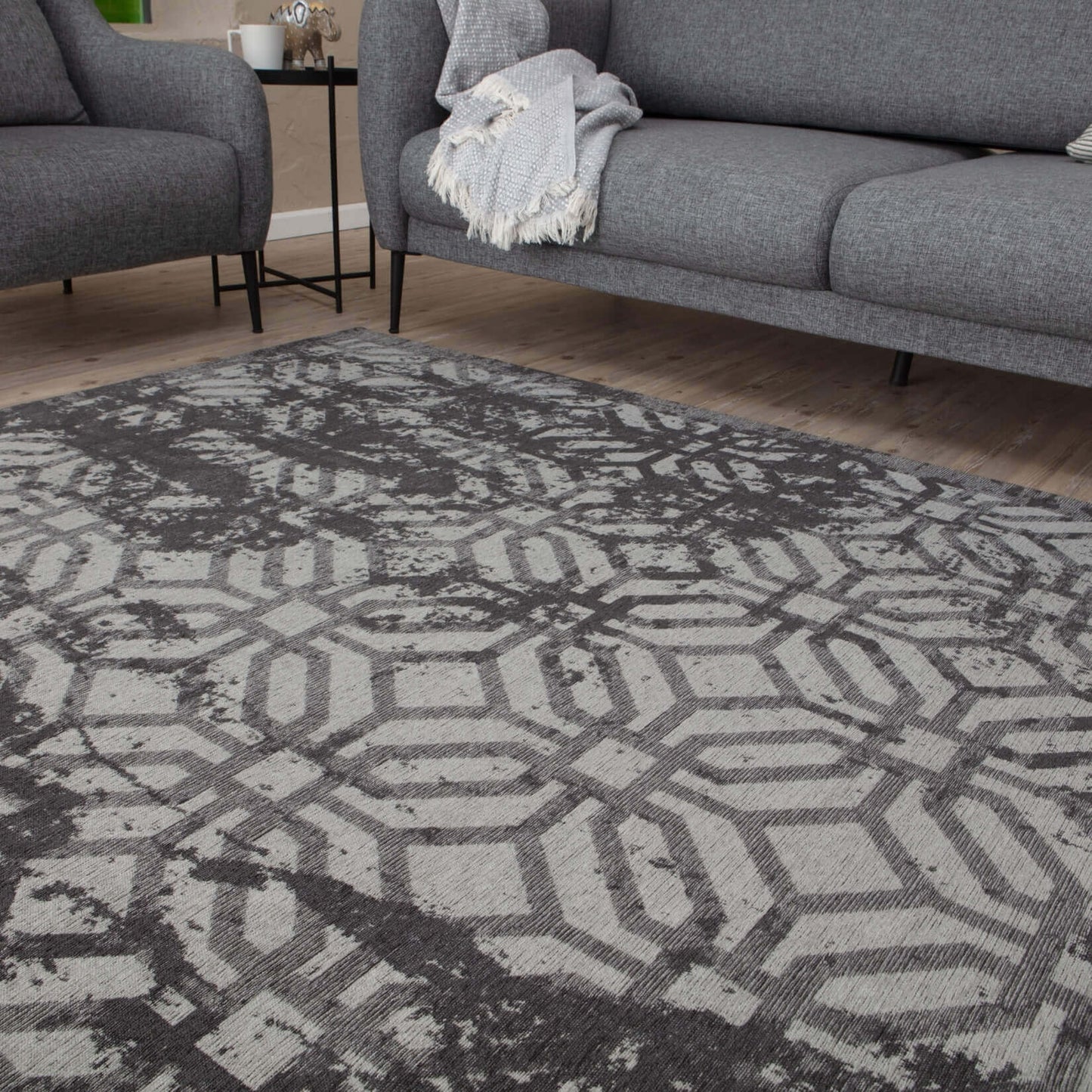 Machine Washable Flatweave Rug Geometric Black will bring brightness to your rooms for a long time with its stain-resistant and non-shedding pile which gives it that perfect finish and durability.