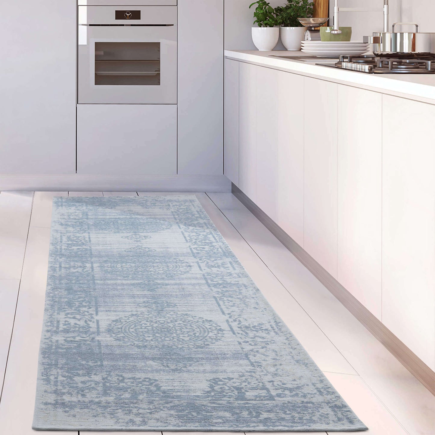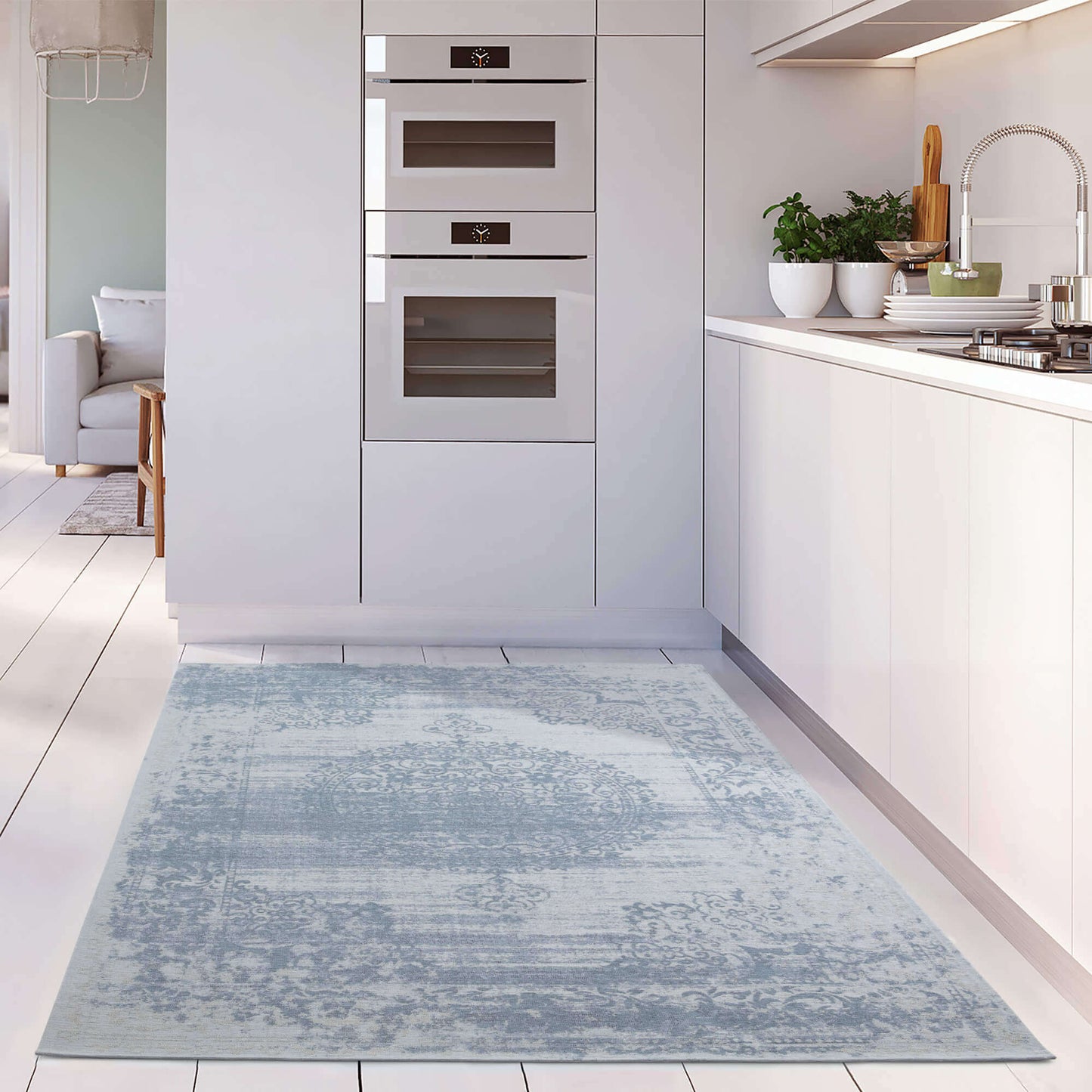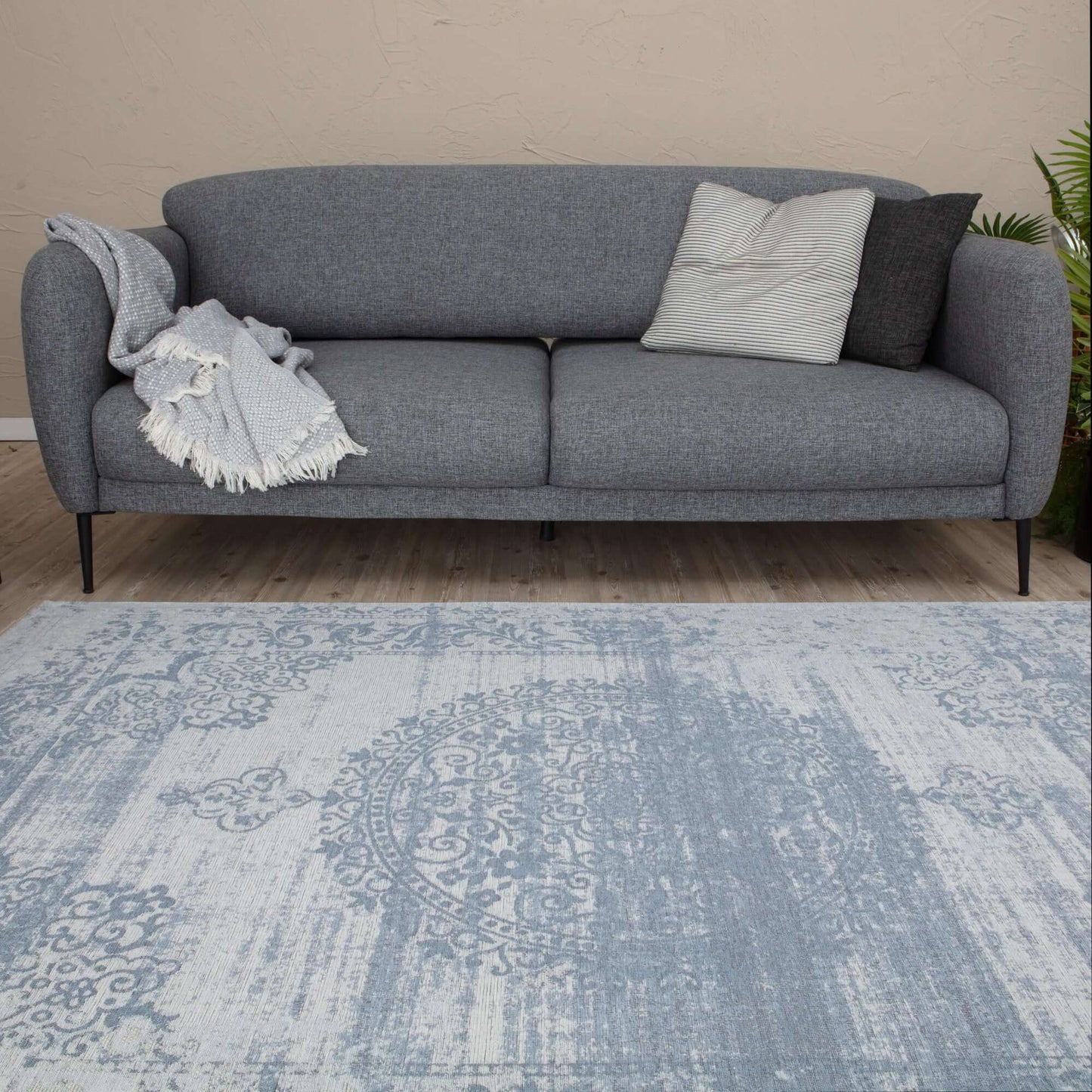 Machine Washable Flatweave Rug Medallion in Blue will bring brightness to your rooms for a long time with its stain-resistant and non-shedding pile which gives it that perfect finish and durability.
