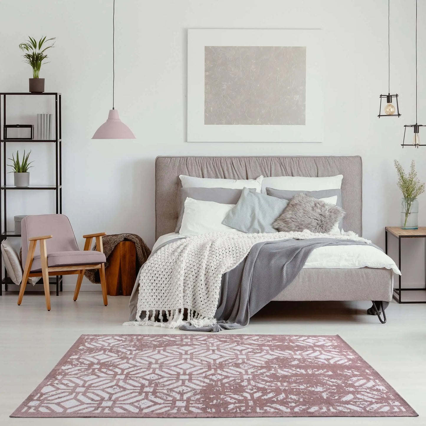 Machine Washable Flatweave Rug Geometric in Pink will bring brightness to your rooms for a long time with its stain-resistant and non-shedding pile which gives it that perfect finish and durability.