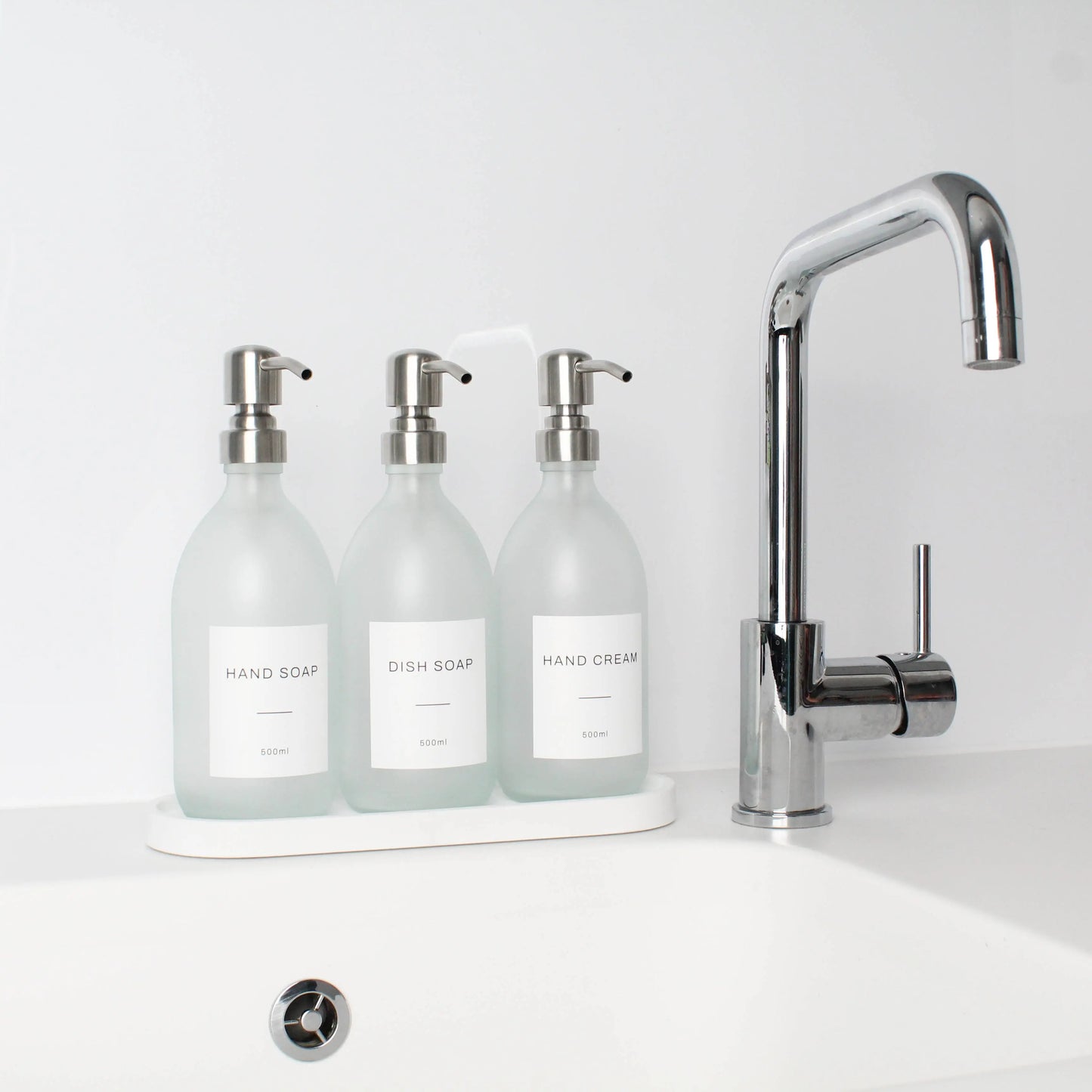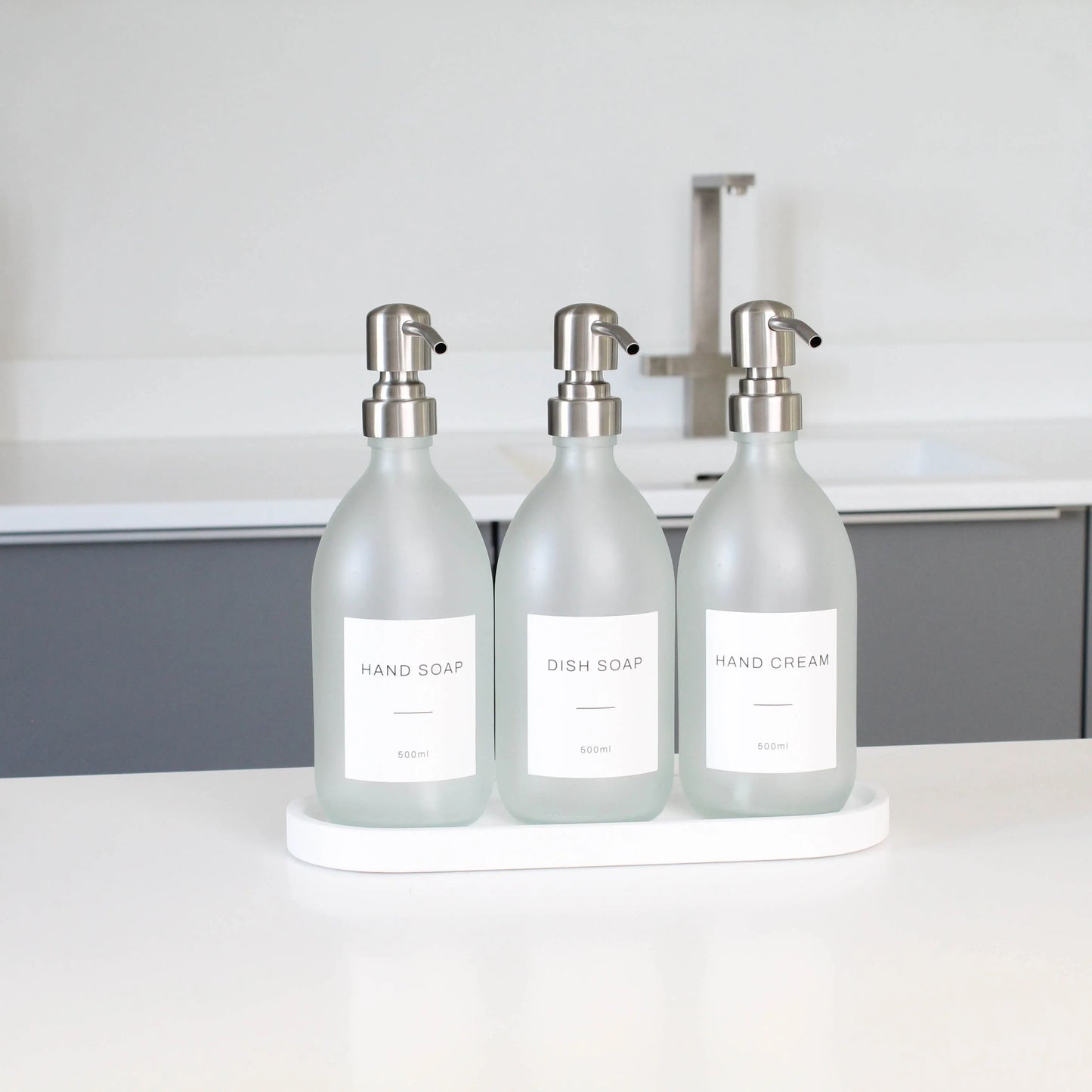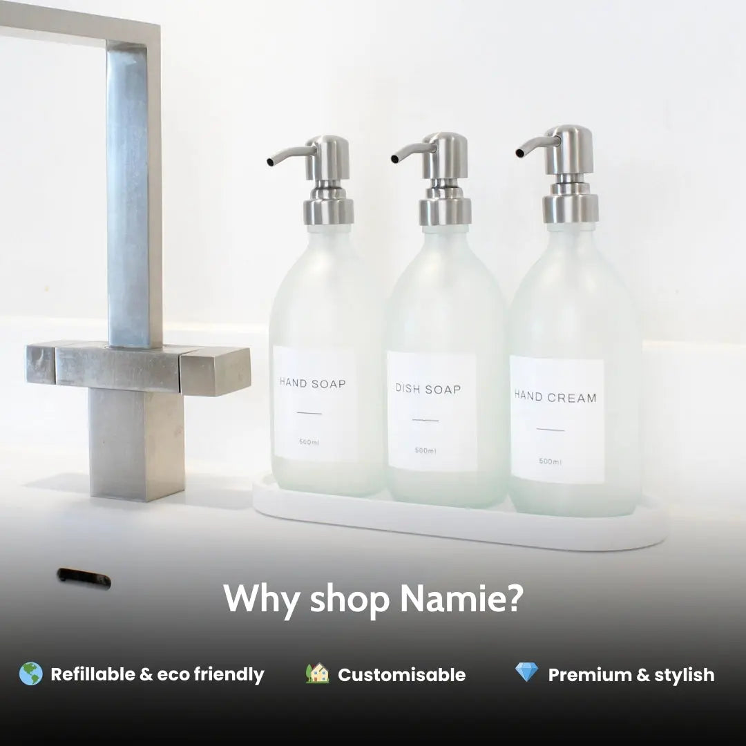 3 x Namie Frosted White Glass Dispenser Bottles (pre-labelled)
