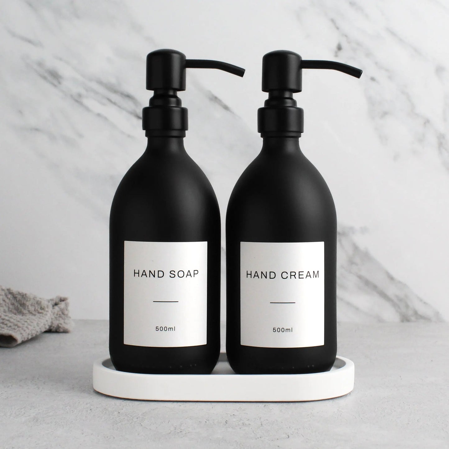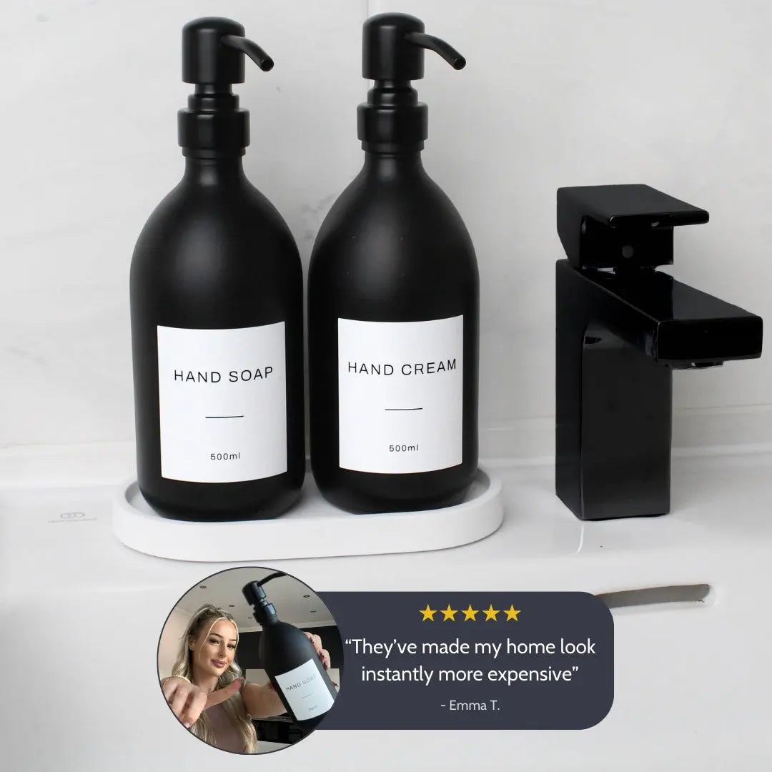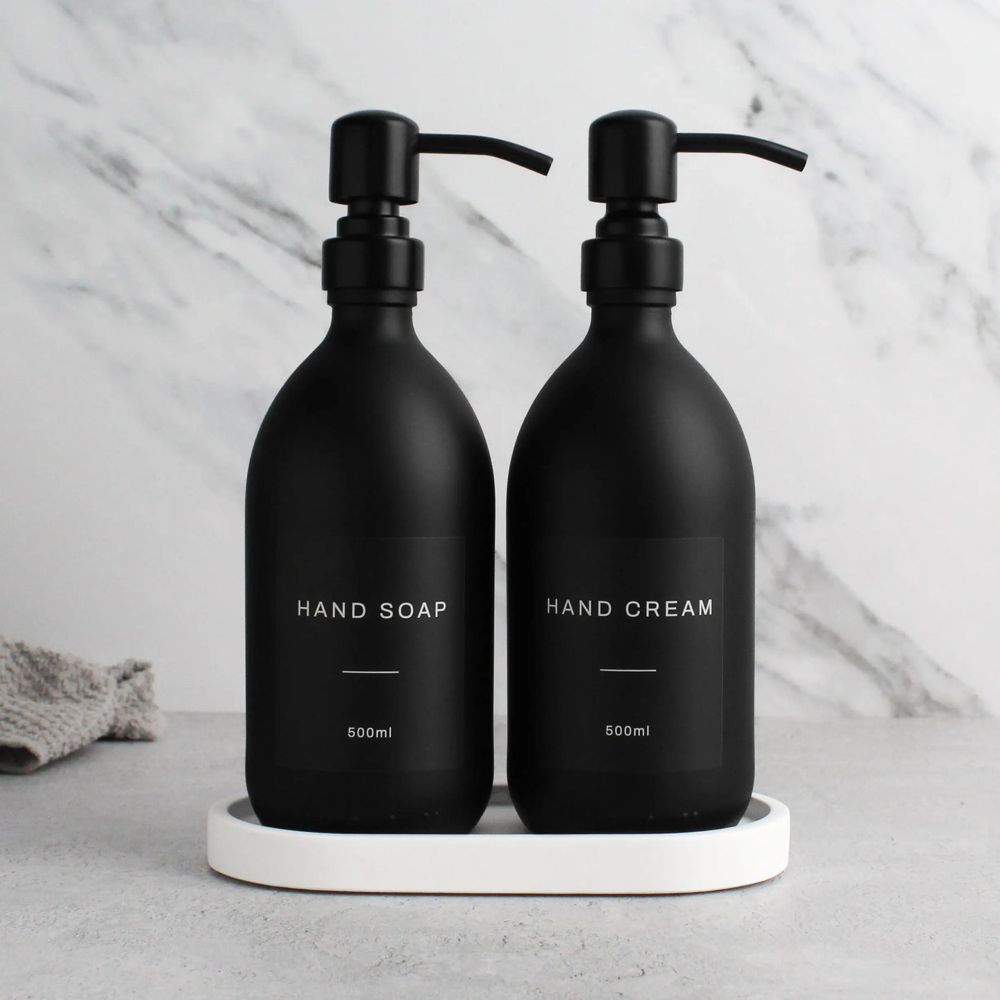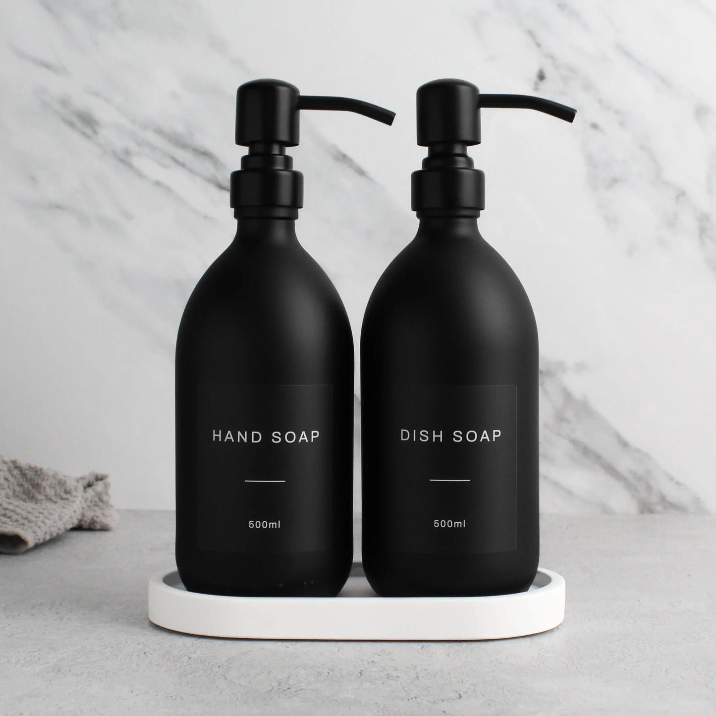 2 x Namie Matte Black Glass Dispenser Bottles (pre-labelled)