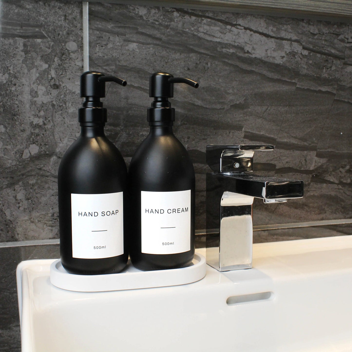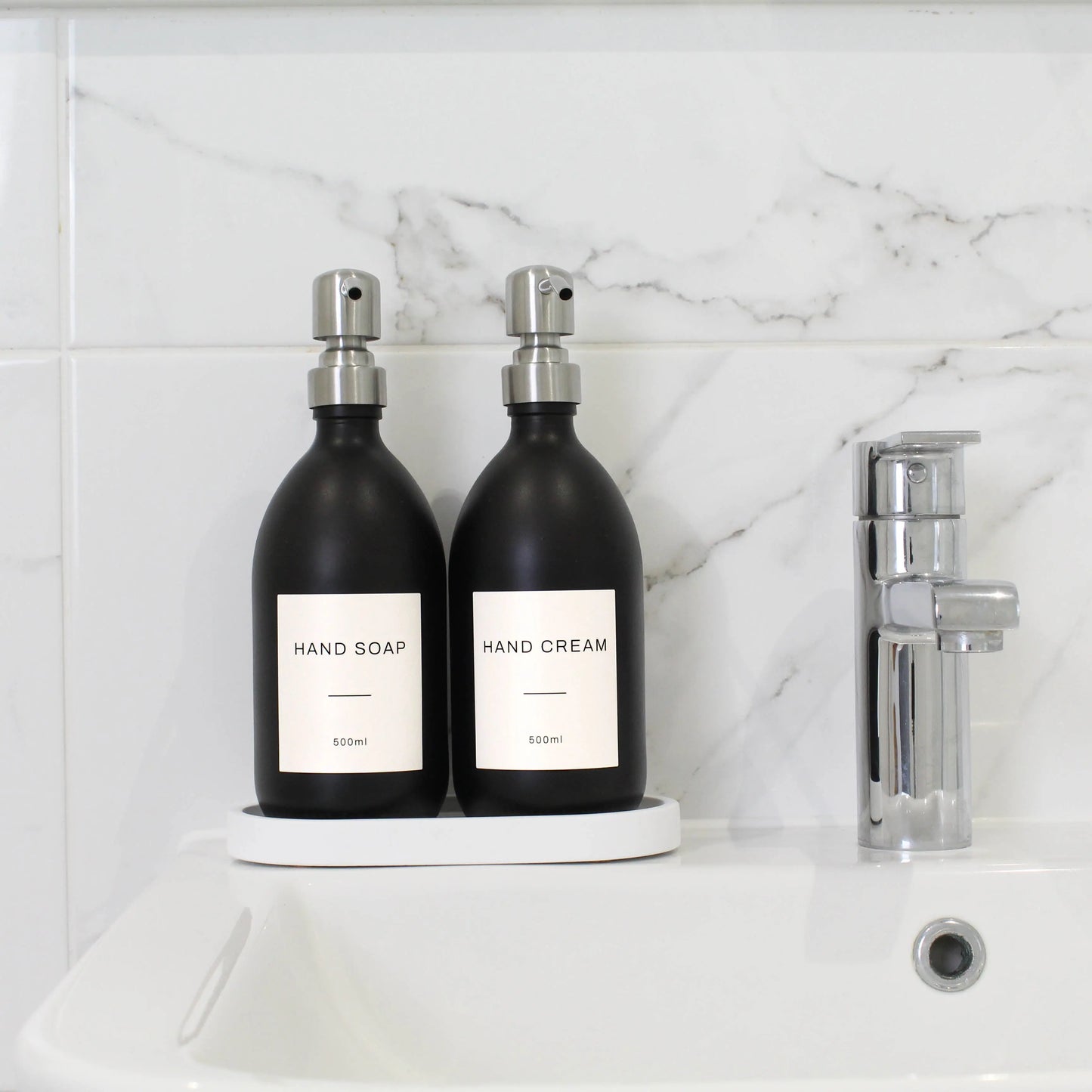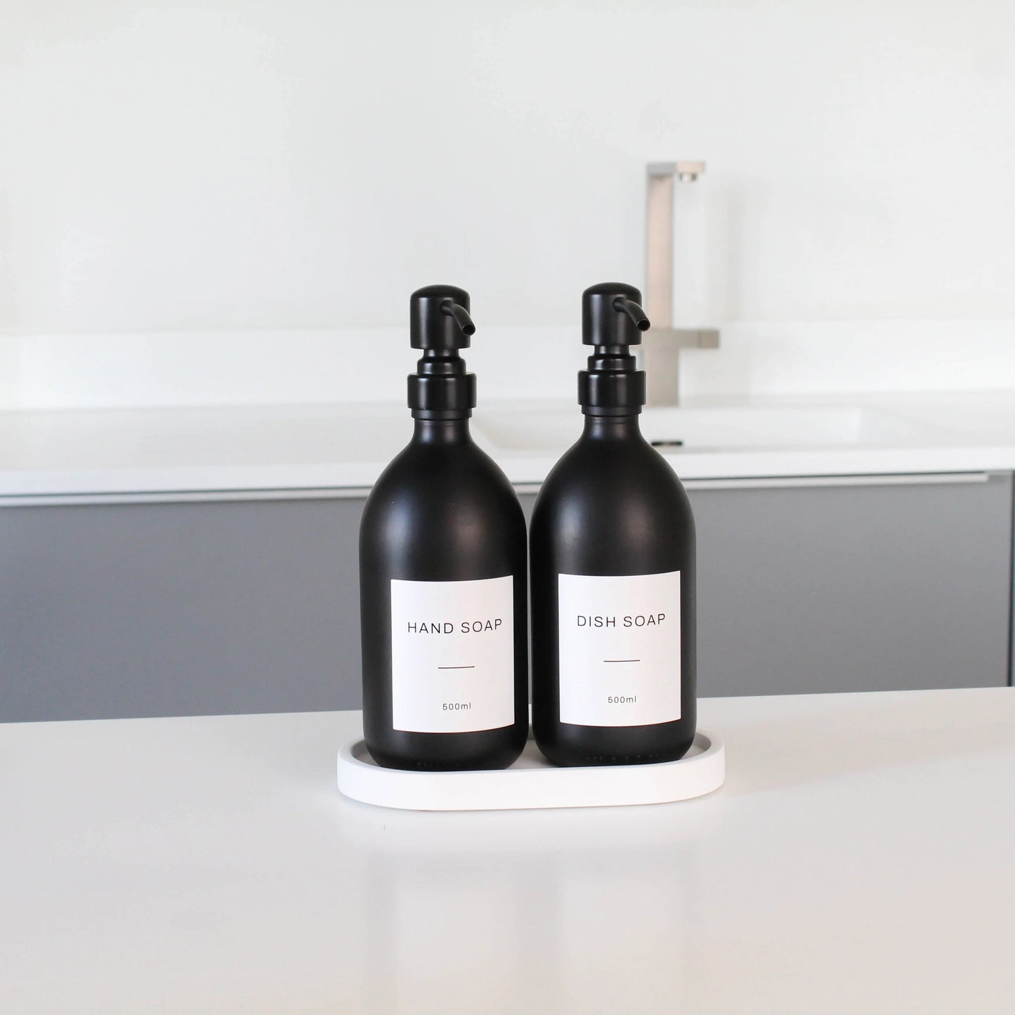 2 x Namie Matte Black Glass Dispenser Bottles (pre-labelled)