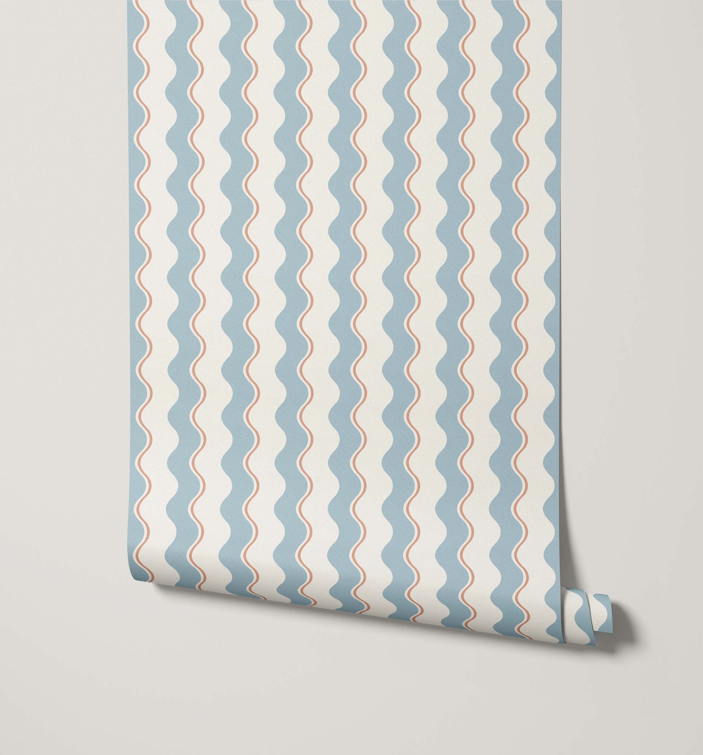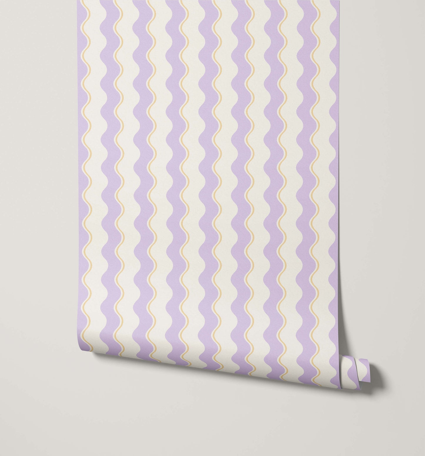 The continuous, flowing structure of the wavy stripe wallpaper is excellent for adding soft verticality and a unique, lighthearted texture to any space. It is a fantastic choice for bedrooms, nurseries, or living areas where a sophisticated yet cheerful atmosphere is desired. This design provides a dynamic aesthetic that captures both contemporary style and whimsical elegance.